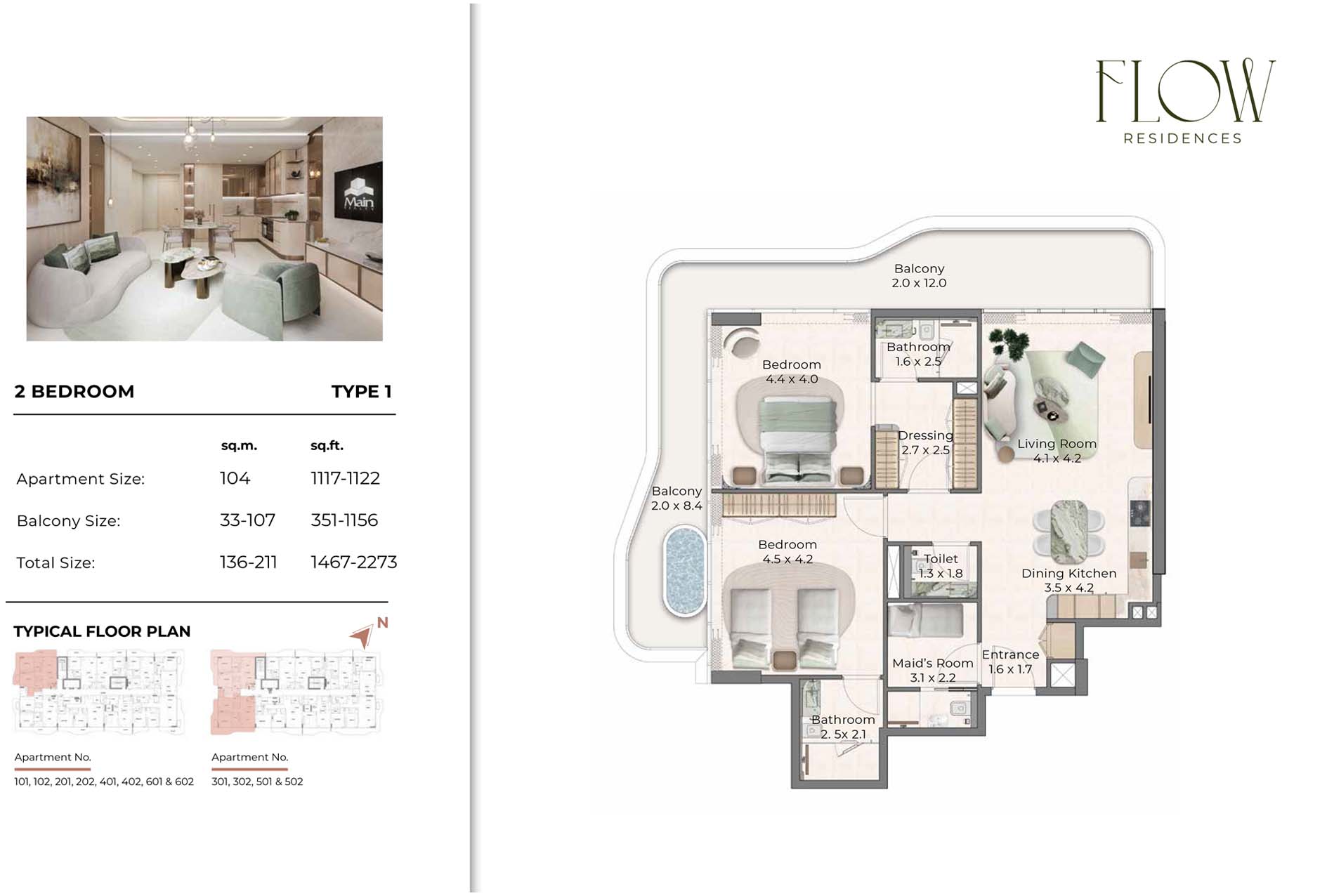 - Spacious 1, 2, 3-bedroom apartment & 3-bedroom townhouses designed with expansive internal spaces and private balconies.