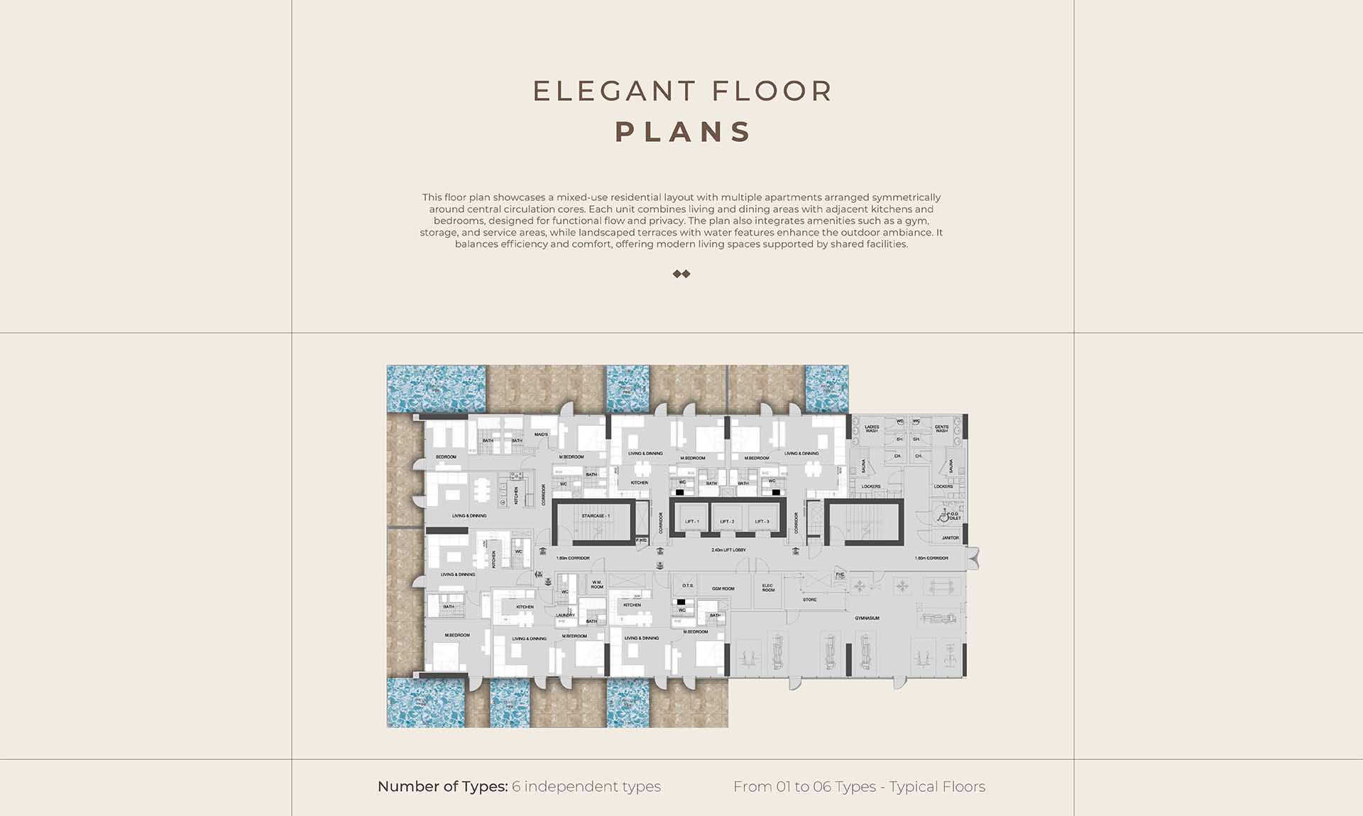 With a bold, straight, and functional design layout, this 19-storey infrastructural gem features minimalist and people-friendly quality & sustainable approaches. The huge windows and walls of striking glass exterior and well-aligned balconies create striking and fresh visuals. This tower is rising from the podium terrace that covers a wide selection of homes. Each unit reflects the calm and aesthetic neutral ambience with soft themes, quality furnishings, and smart living solutions. The ventilated designs, including expensive windows in living and bedrooms with direct access to the balconies, ensure an effortless bond between private indoors and scenic outdoors.