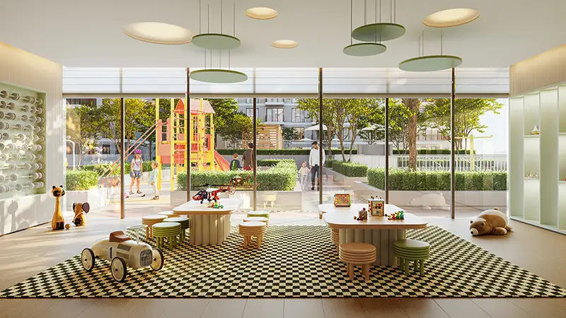 The compelling exterior of these mid-rise buildings becomes a visual experience. Here, mindfully imagined intricate luxury meets craftsmanship that forms a flowing layout for seamless connection inside-out access. With intense earthy tones, grand windows, and extended balconies, the facade seems to blur the line between private indoor and the green outside. All personal and common spaces and the landscape of this project are planned to support a family-focused living that enriches and elevates the daily moment of refined living.