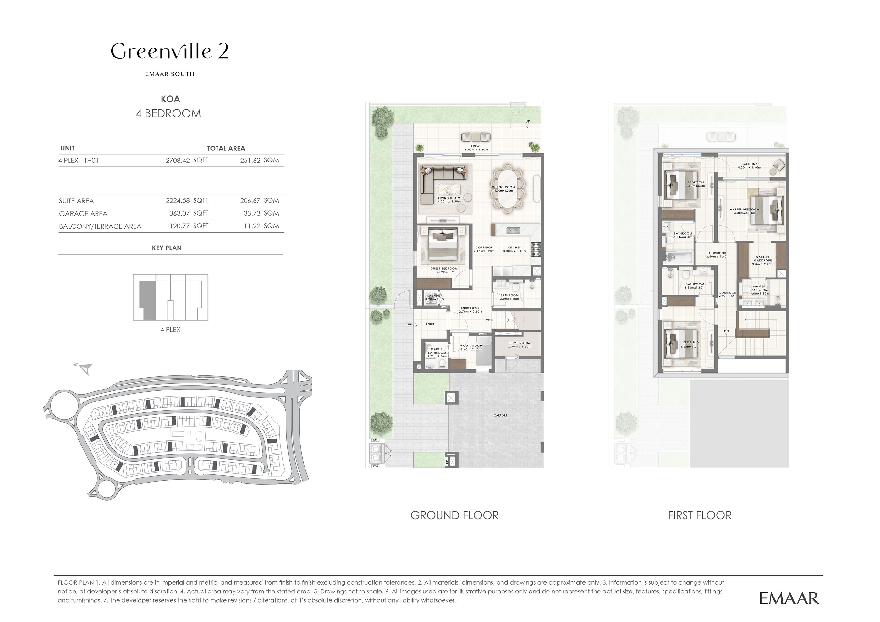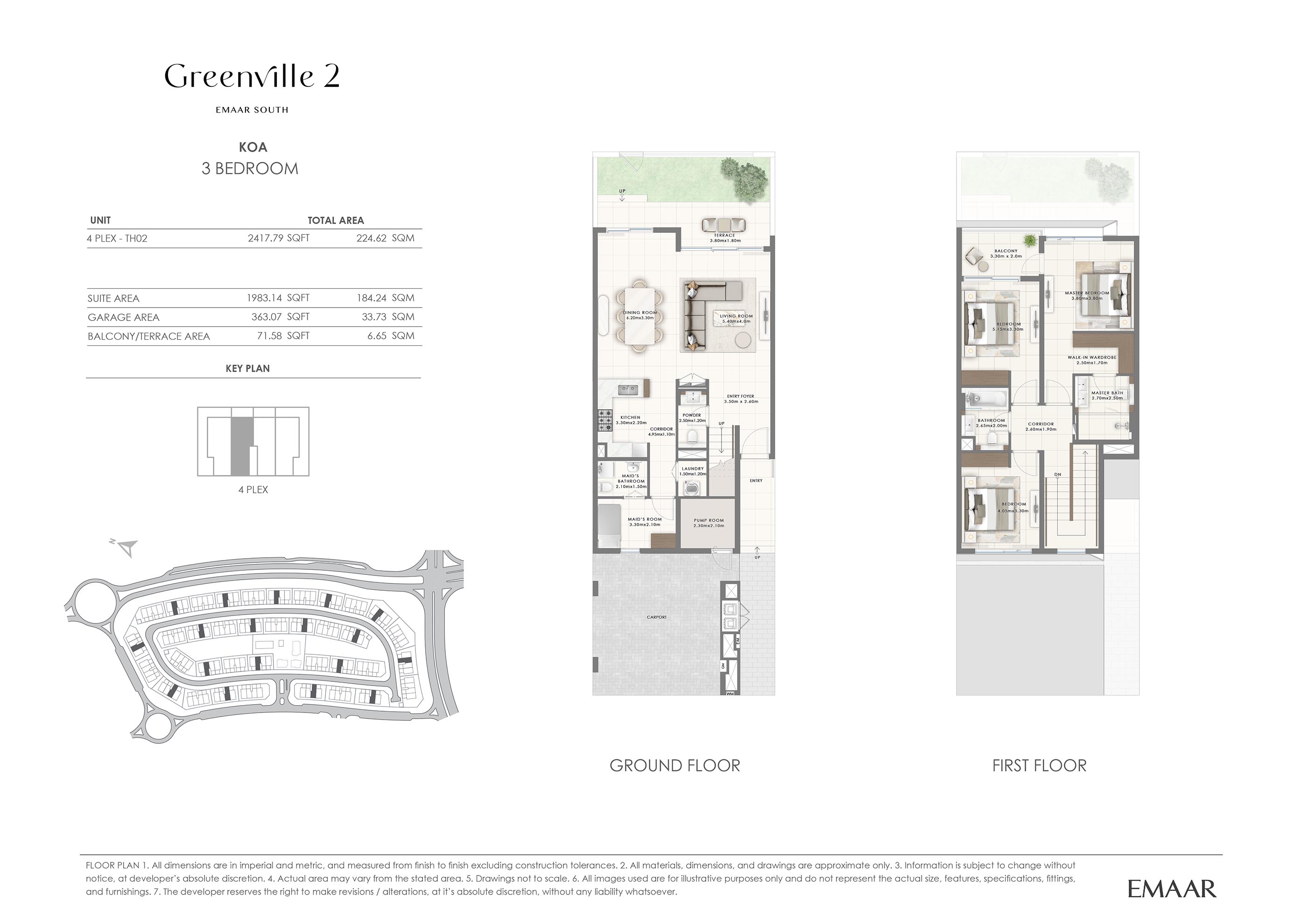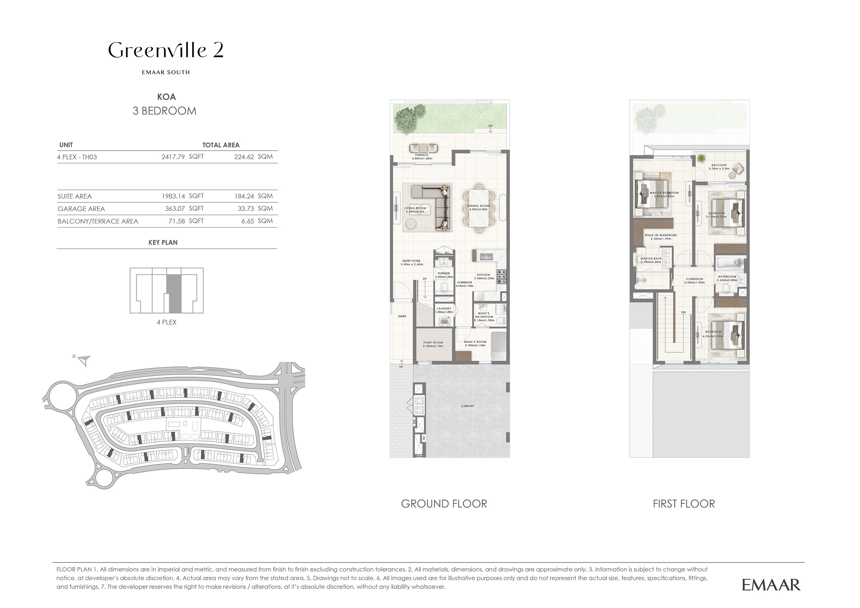 Emaar Greenville 2 offers spacious and intelligently designed floor plans of 3 and 4-bedroom townhouses, each tailored to meet the diverse needs. Featuring modern facades and expansive interiors, these homes exude sophistication and practicality. Large floor-to-ceiling windows flood the interiors with natural light, offering breathtaking views of the surrounding greenery. The open-plan living areas seamlessly connect to the private gardens, creating an indoor-outdoor living experience. Bedrooms are designed for comfort and privacy, while modern kitchens and bathrooms enhance everyday functionality. The versatile layouts cater to various lifestyles, from growing families to those seeking ample space for entertainment and relaxation.