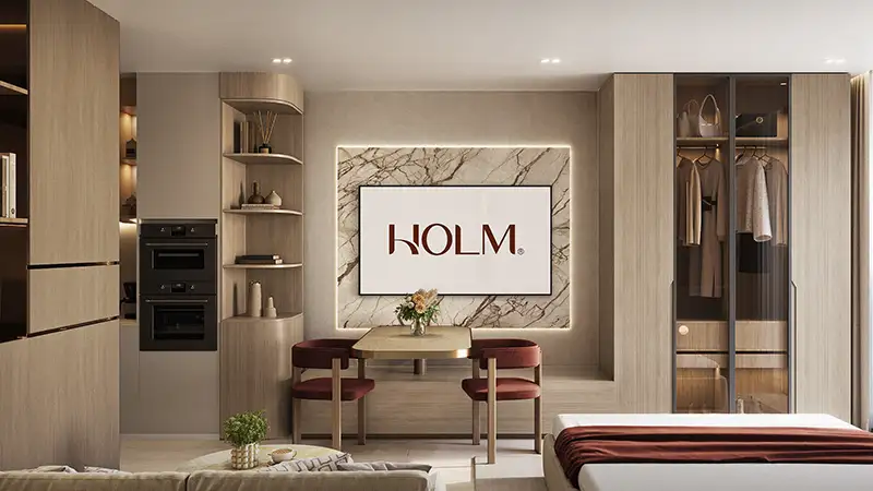 Holm One at Jumeirah Garden City, Dubai is an intentionally rising boutique housing icon by Holm Developments, with studios and 1-bedroom apartments. In the heart of Al Satwa, this contemporary residential address is marked as the entry of this new developer in the city’s prestigious real estate landscape. Within one of the well-developed and seamlessly connected communities, it is the signature-style compelling architectural landmark that showcases a calm and purposefully crafted, fluent design. The luxurious and light-filled warm, grand, functionally furnished interiors, and a few lifestyle amenities are curated perfectly within this building to suit the refined comfort, convenience, and timeless aesthetic.