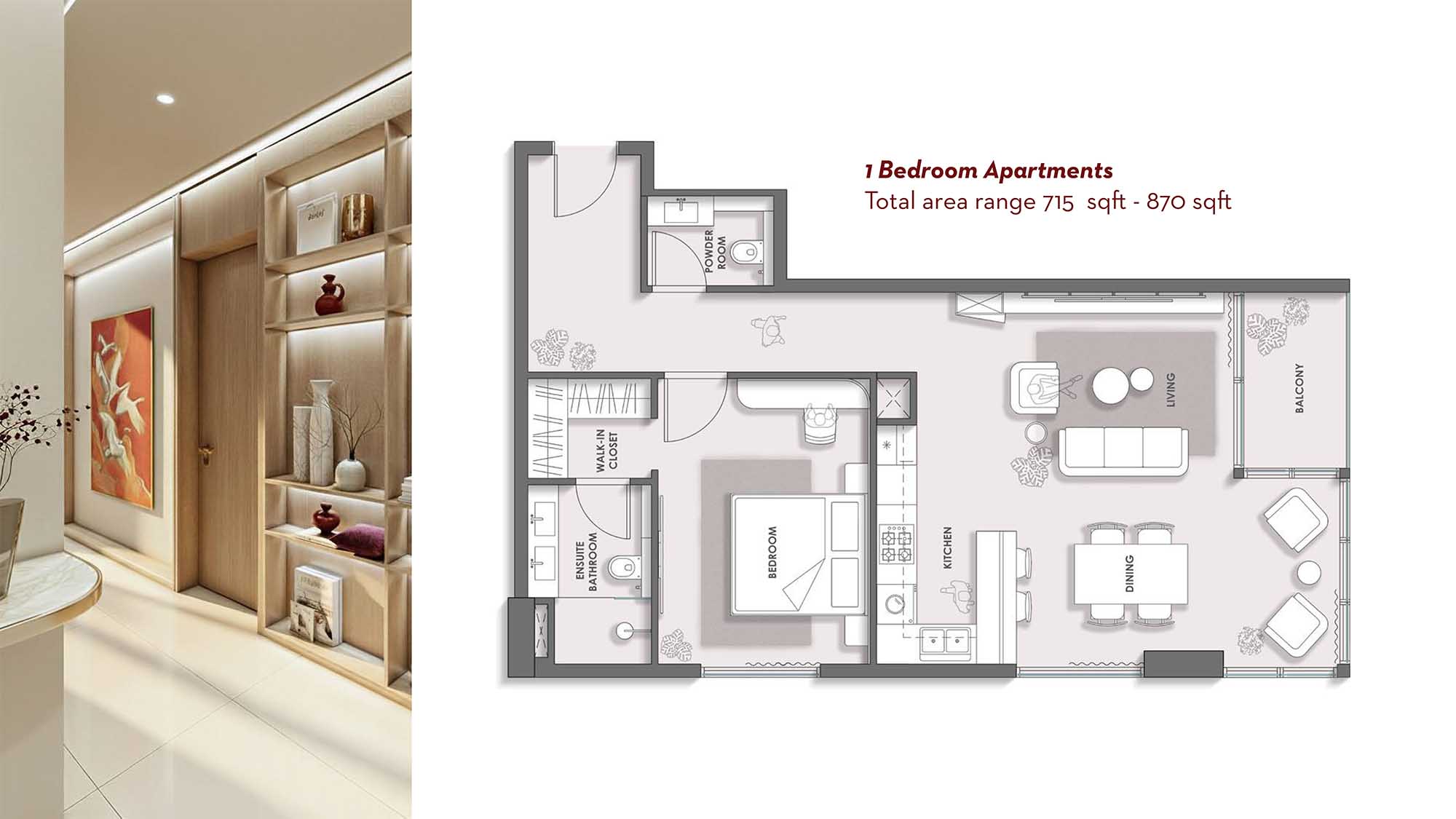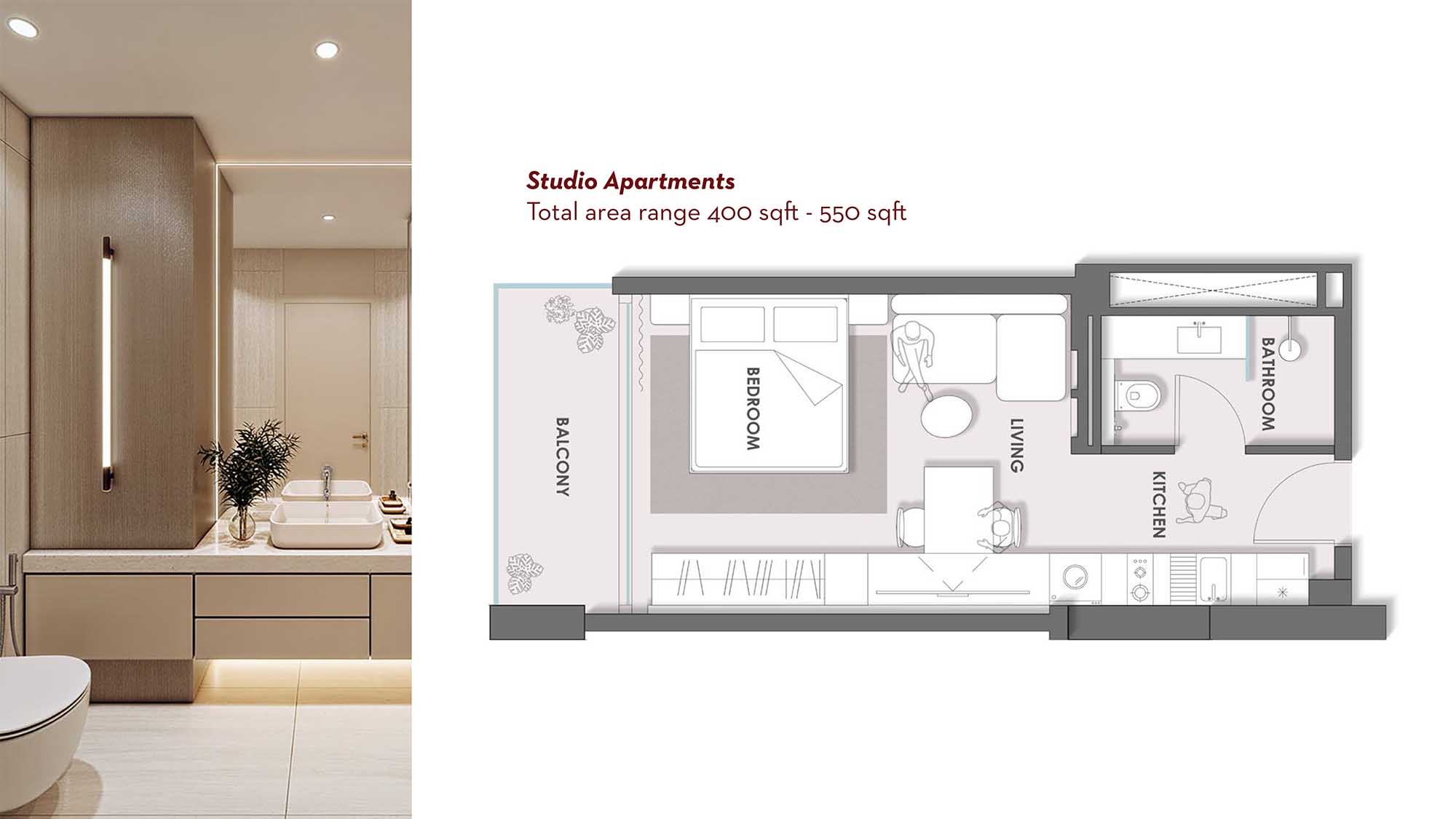 - Offering a wide range of exclusively elegant and premium studios and 1-bedroom apartments
