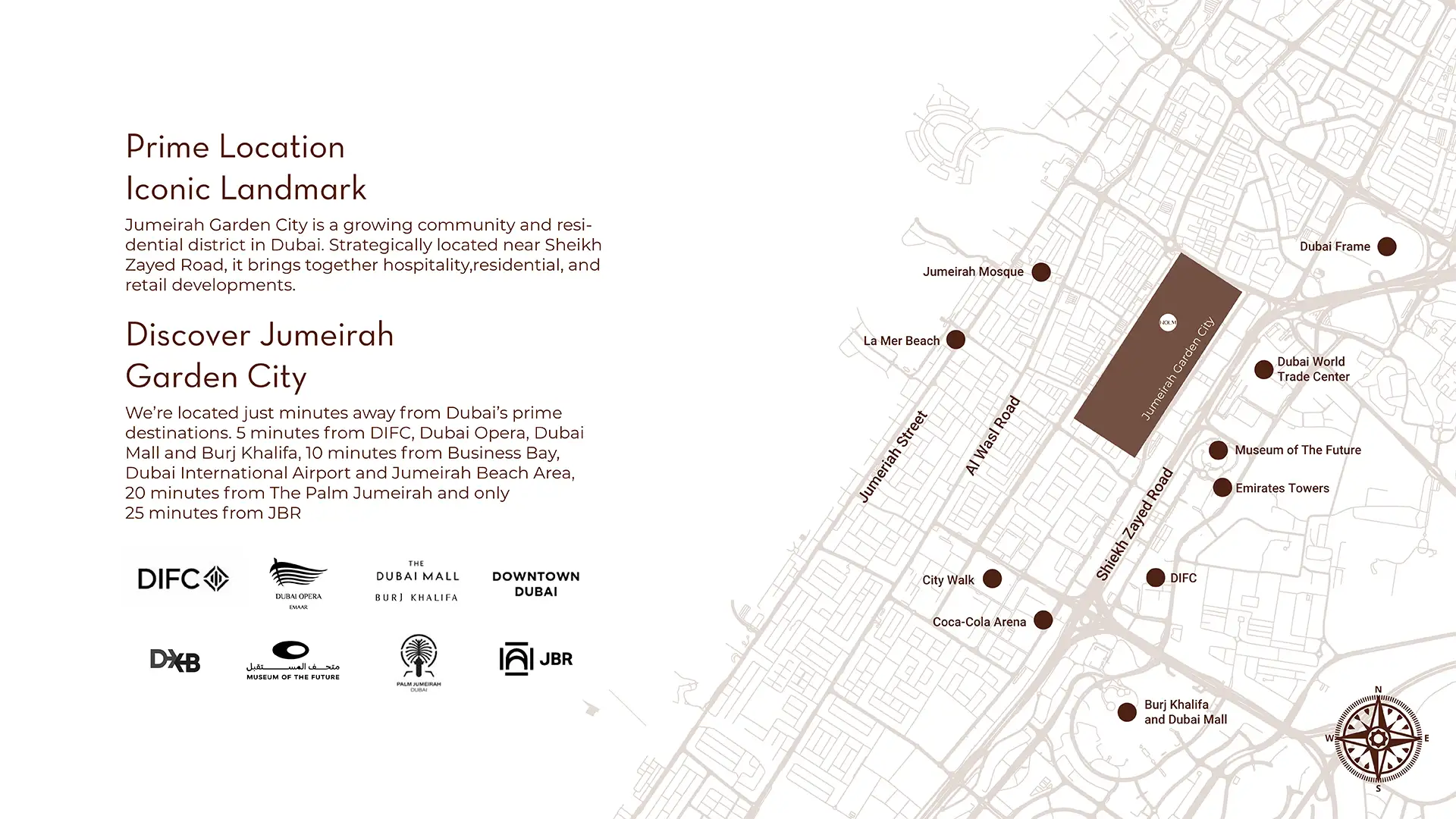 - Positioned within city’s fastest thriving modern community close to the Sheikh Zayed Road, metro station, and various attractions of Jumeirah Beach, DIFC, Burj Khalifa, and Business Bay