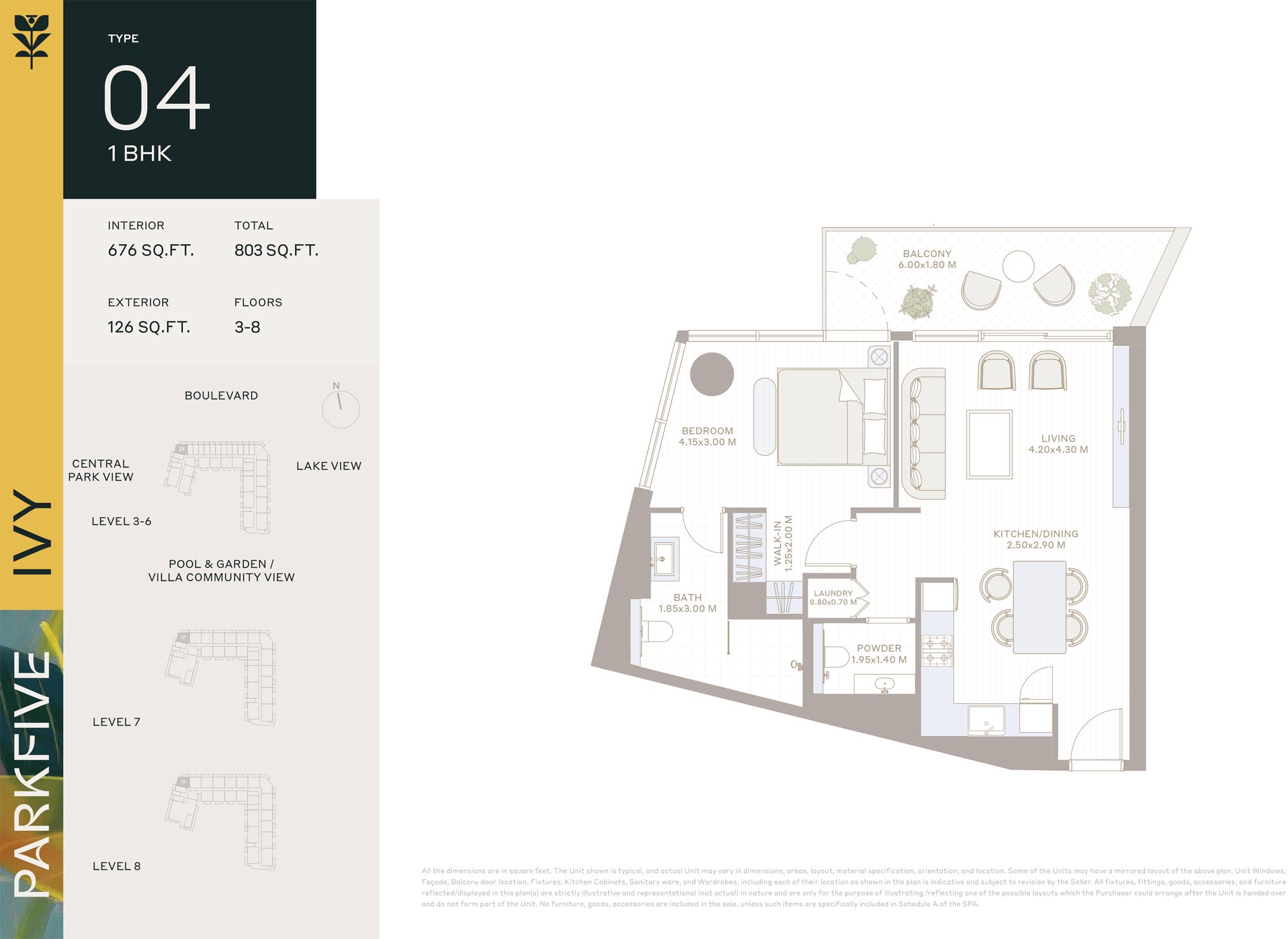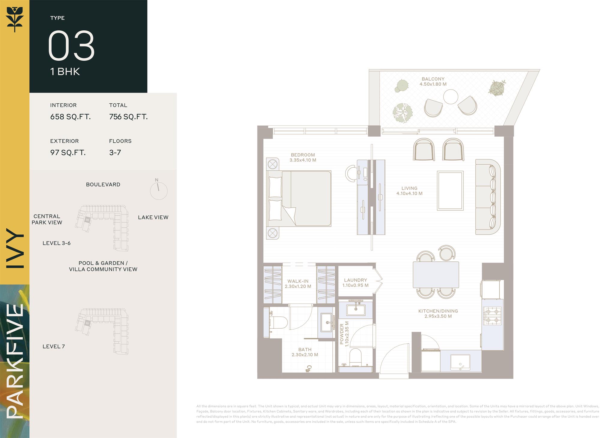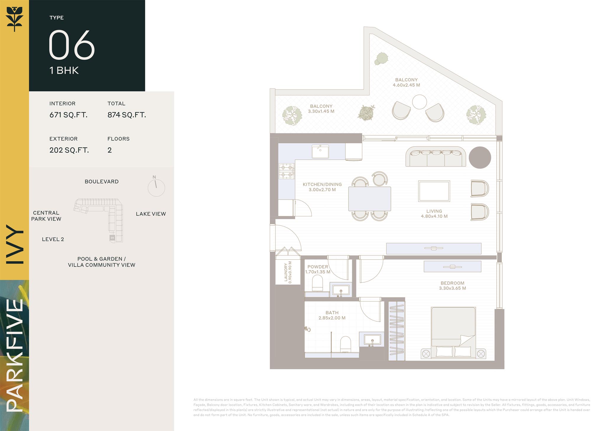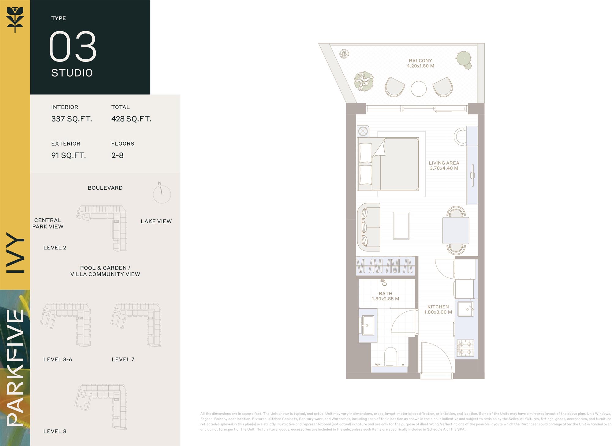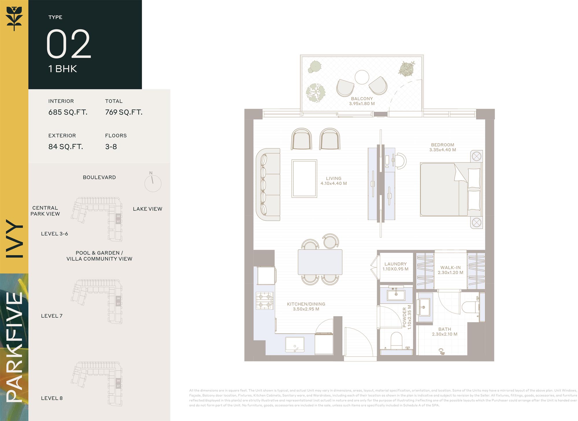 Ivy at ParkFive floor plans are created to meet the efficiency and exquisiteness with studios, 1, 2 and 3-bedroom apartments at ease. The layouts are open plan, allowing a natural flow between the living areas, dining areas, and kitchen areas. The concept of inclusion of large balconies or terraces to many units is provided, where there is personal space in the outdoors environment with a view. Kitchen and drawing rooms are superior and well-proportioned with excellent finishes. The units are oriented to the utilization of natural light, as the glazing and views are oriented toward the lakes and parks or peaceful landscaped areas wherever possible.