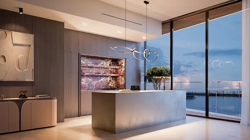 From intimately compact to extraordinarily grand residences, this low-rise gem features all sorts of homes for prosperity. All the apartments come in a refined series of dwellings, where the insides are harmoniously sculpted with well-aligned proportions, floor-to-ceiling windows. Bathed in natural daylight, the living rooms with dining zones and kitchens and bedrooms are the places made to cherish everyday routine. This building also showcases the pinnacle of ultra-luxurious and spectacular living in three penthouses, crowning this icon with private pools. Here, each unit embodies the highest ceilings, bespoke and ultra-premium materials, and the exceptional full-height views of the sea, city, and the island’s bustling scenery.