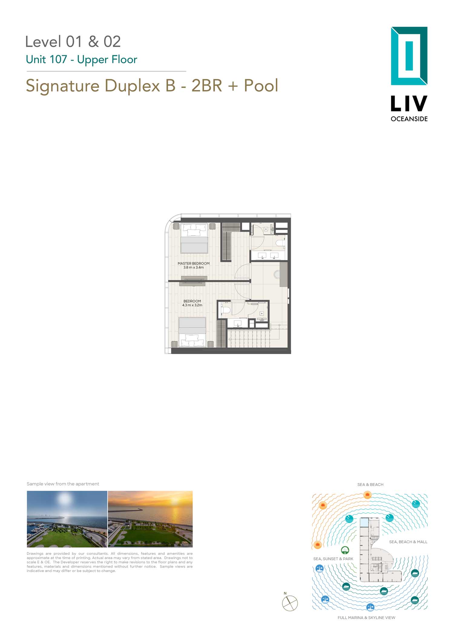 | Level 01 & 02 | 2 Bedroom + Pool | Unit 107 Upper Floor (Signature Duplex B 2BR) | 2860.29 Sq Ft | Apartment |