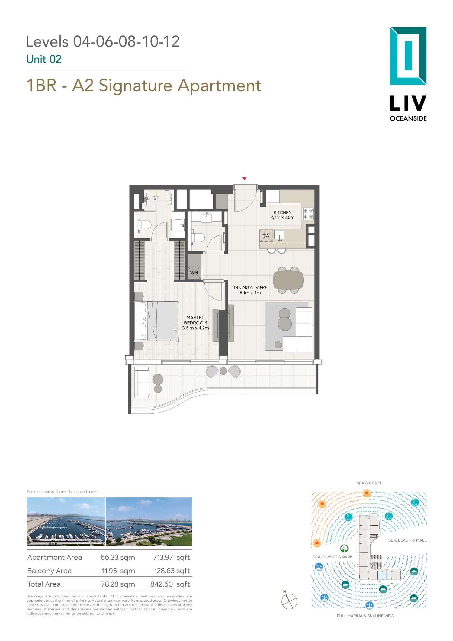 | Level 04 - 12 | 1 Bedroom | Unit 02 (1BR - A2 Signature Apartment) | 842.60 Sq Ft | Apartment |