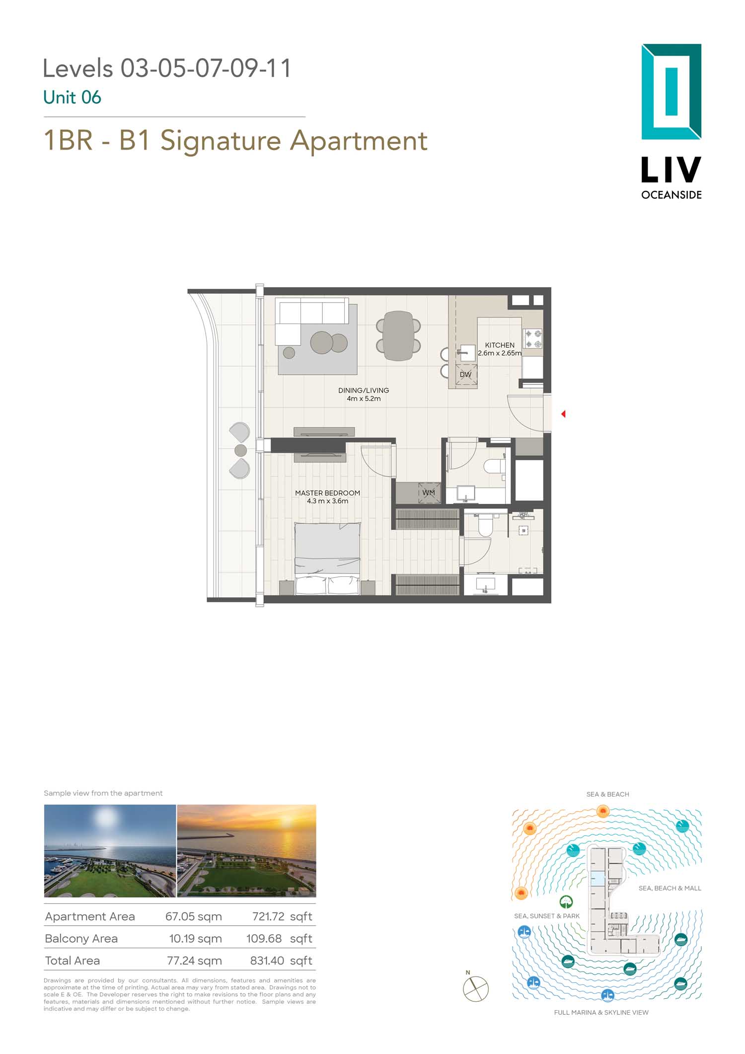 | Level 04 - 12 | 1 Bedroom | Unit 06 (1BR - B1 Signature Apartment) | 831.40 Sq Ft | Apartment |