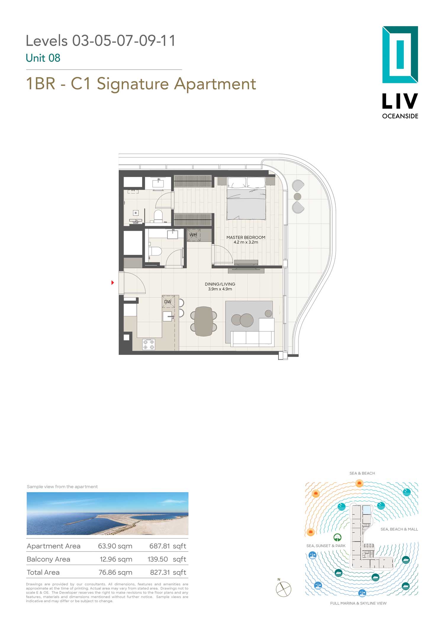 | Level 04 - 12 | 1 Bedroom | Unit 08 (1BR - C1 Signature Apartment) | 827.31 Sq Ft | Apartment |