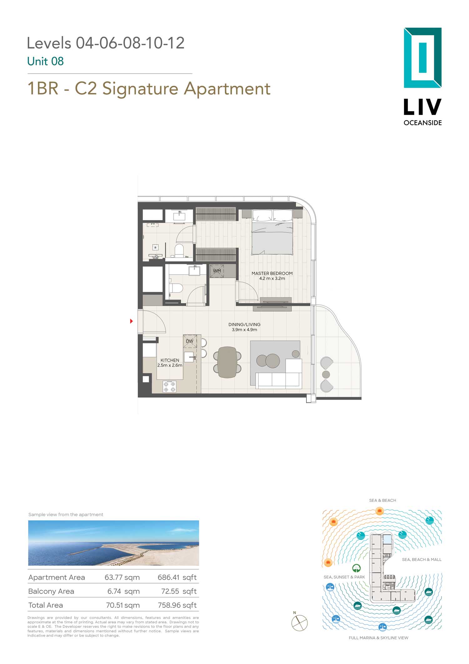 | Level 04 - 12 | 1 Bedroom | Unit 08 (1BR - C2 Signature Apartment) | 758.96 Sq Ft | Apartment |