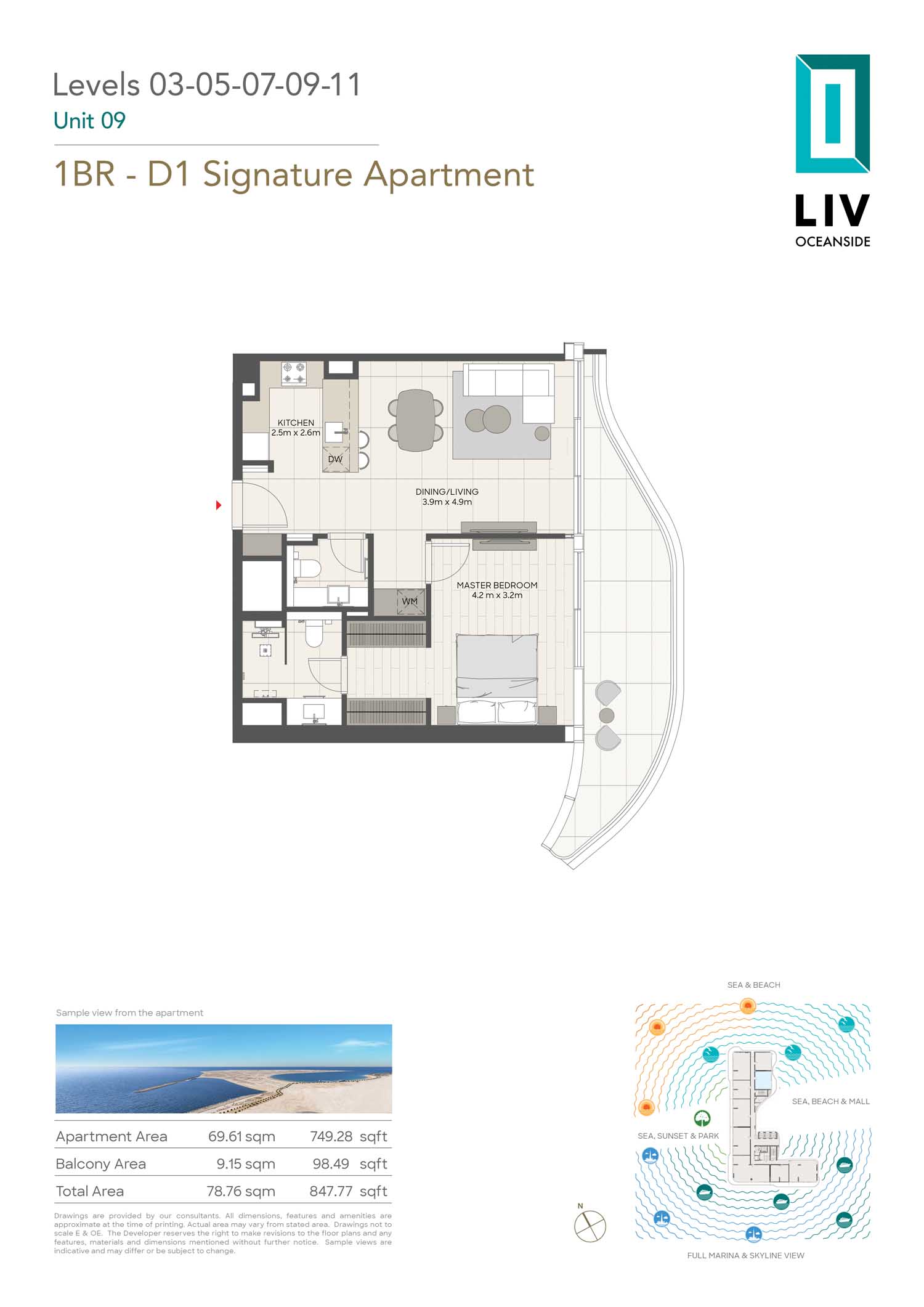 | Level 04 - 12 | 1 Bedroom | Unit 09 (1BR - D1 Signature Apartment) | 847.77 Sq Ft | Apartment |