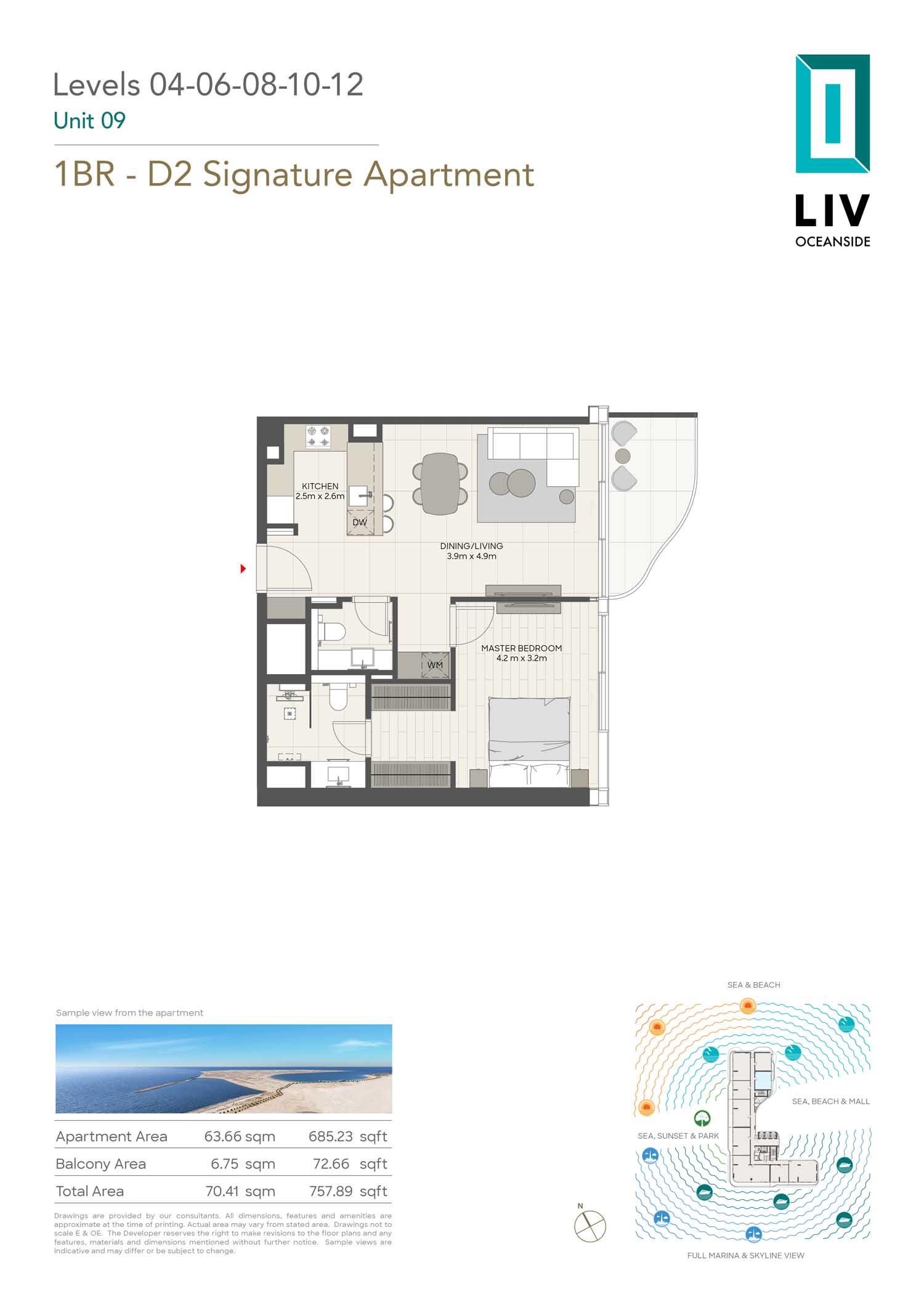| Level 04 - 12 | 1 Bedroom | Unit 09 (1BR - D2 Signature Apartment) | 757.89 Sq Ft | Apartment |
