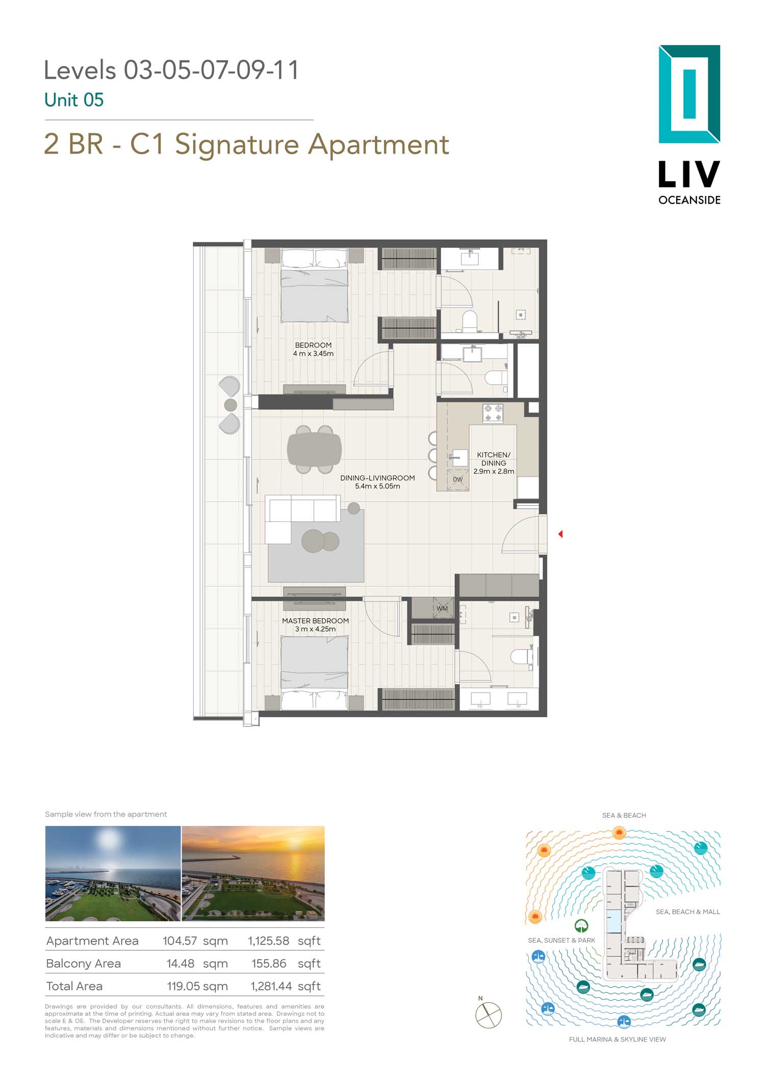 | Level 04 - 12 | 2 Bedrooms | Unit 05 (2BR C1 - Signature Apartment) | 1281.44 Sq Ft | Apartment |