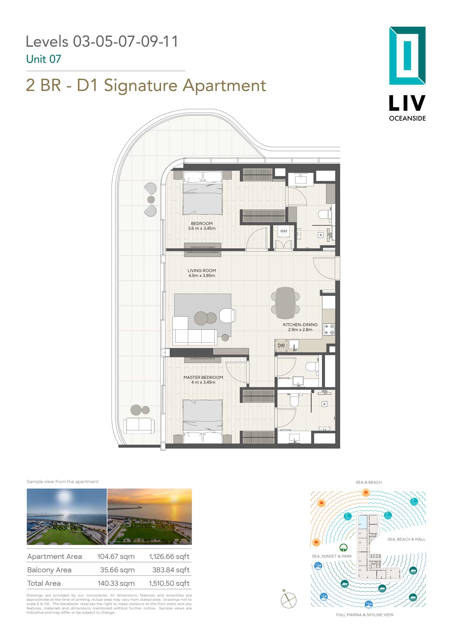 | Level 04 - 12 | 2 Bedrooms | Unit 07 (2BR D1 - Signature Apartment) | 1510.50 Sq Ft | Apartment |