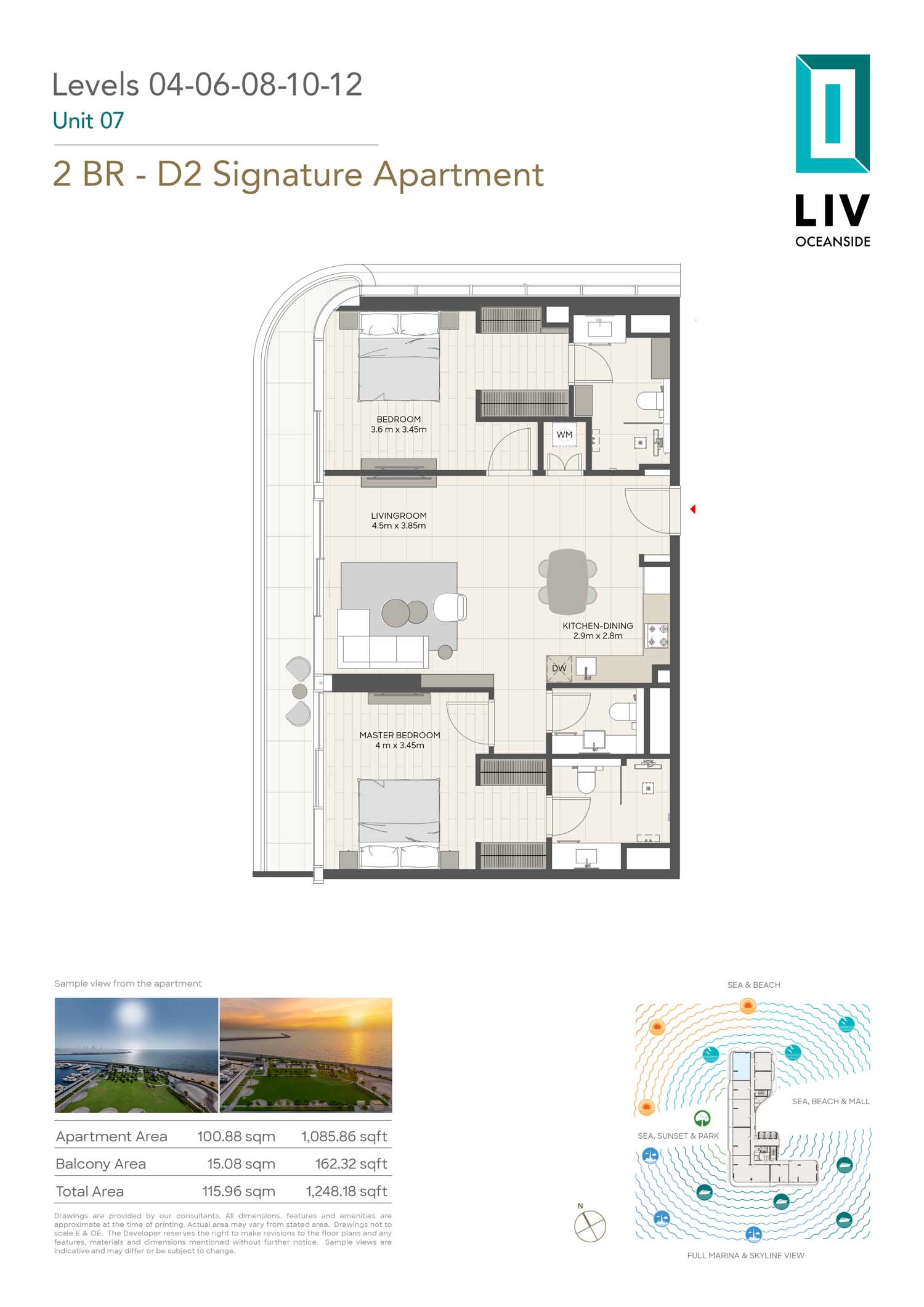 | Level 04 - 12 | 2 Bedrooms | Unit 07 (2BR D2 - Signature Apartment) | 1248.18 Sq Ft | Apartment |