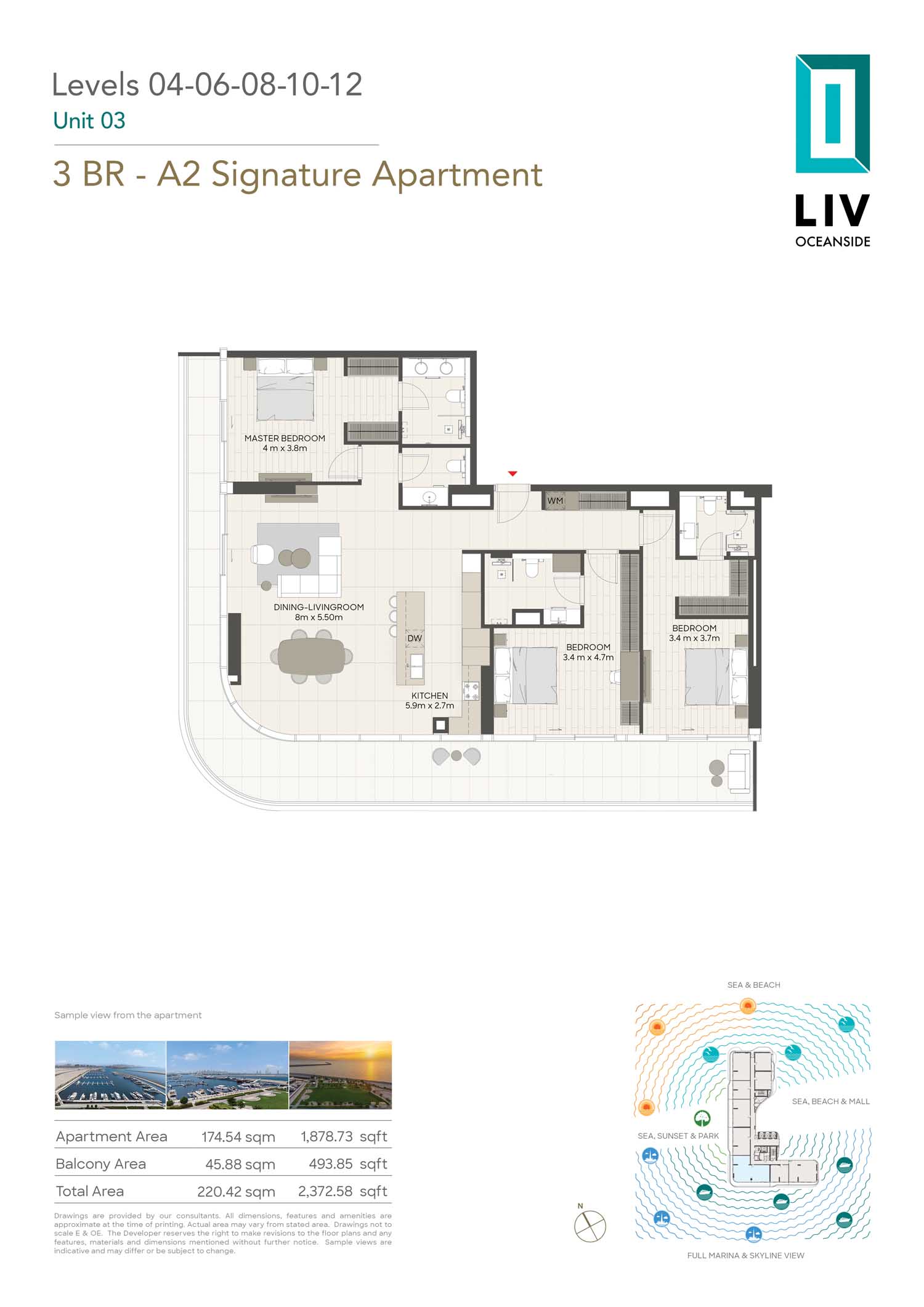 | Level 04 - 12 | 3 Bedrooms | Unit 03 (3BR A1 - Signature Apartment) | 2372.58 Sq Ft | Apartment |
