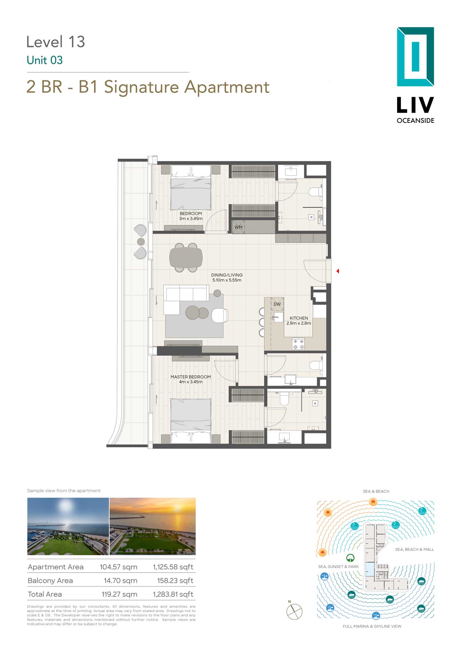| Level 13 | 2 Bedrooms | Unit 03 (2BR B1 - Signature Apartment) | 1283.81 Sq Ft | Apartment |