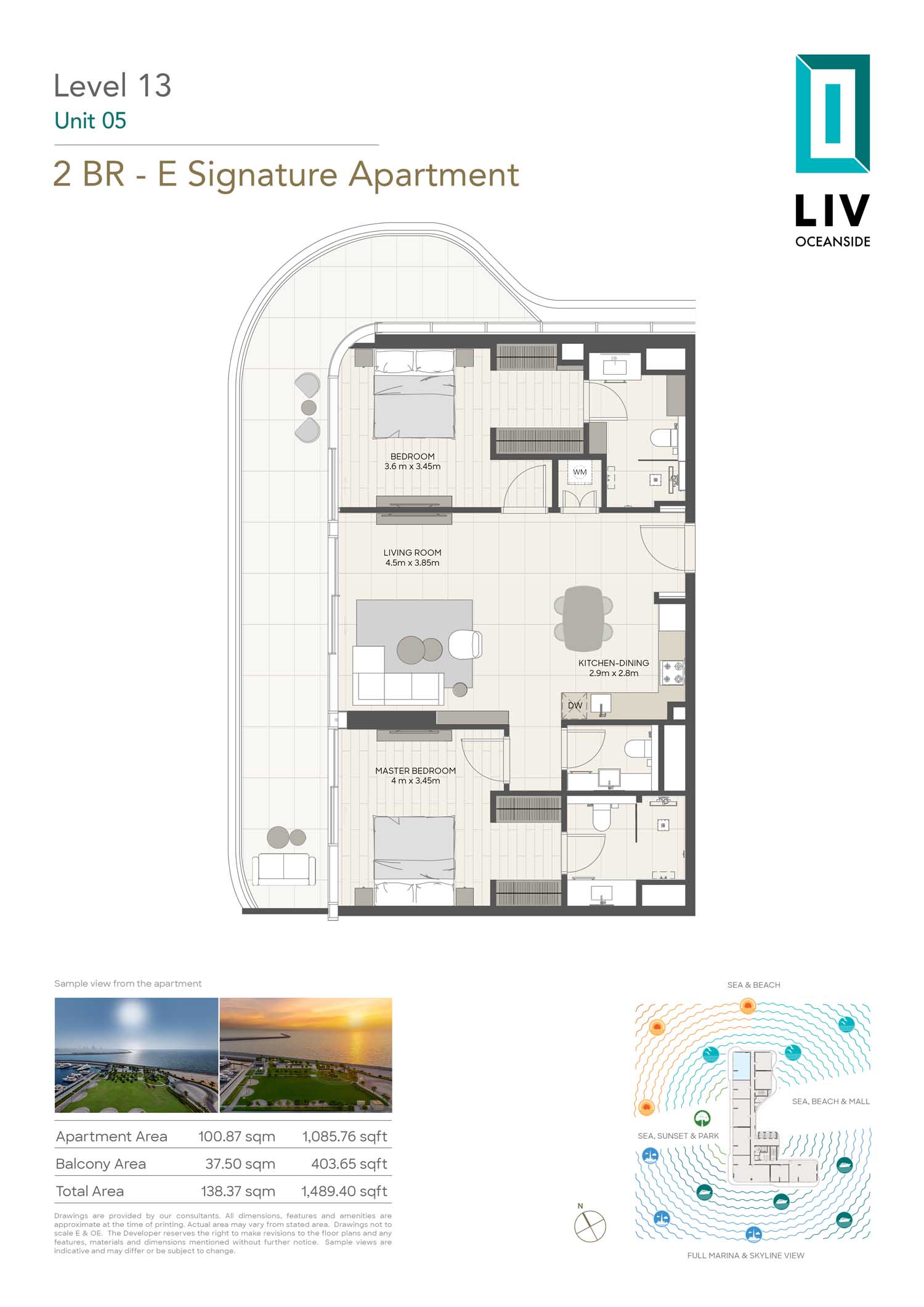 | Level 13 | 2 Bedrooms | Unit 05 (2BR E - Signature Apartment) | 1489.40 Sq Ft | Apartment |