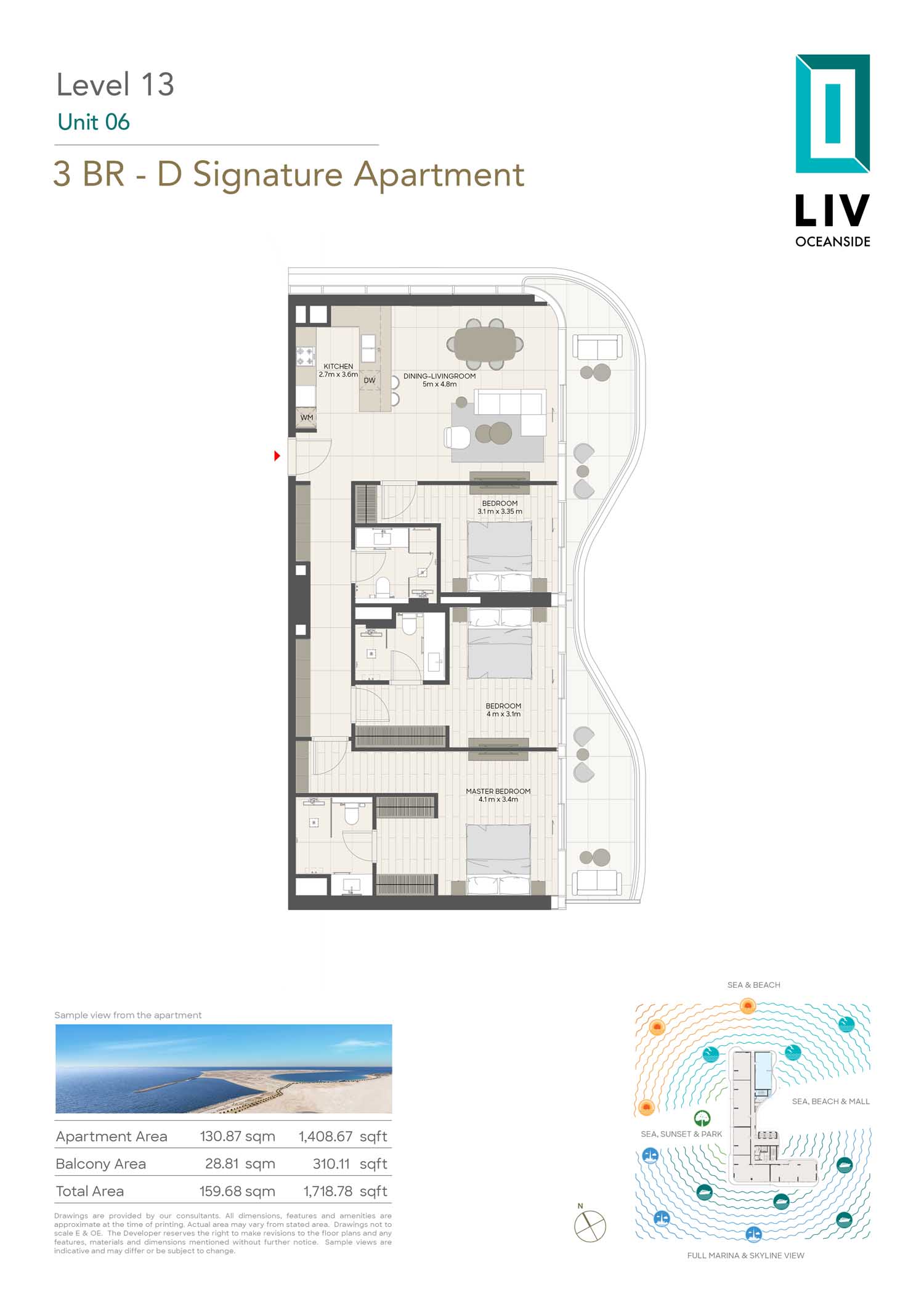 | Level 13 | 3 Bedrooms | Unit 06 (3BR D - Signature Apartment) | 1718.78 Sq Ft | Apartment |