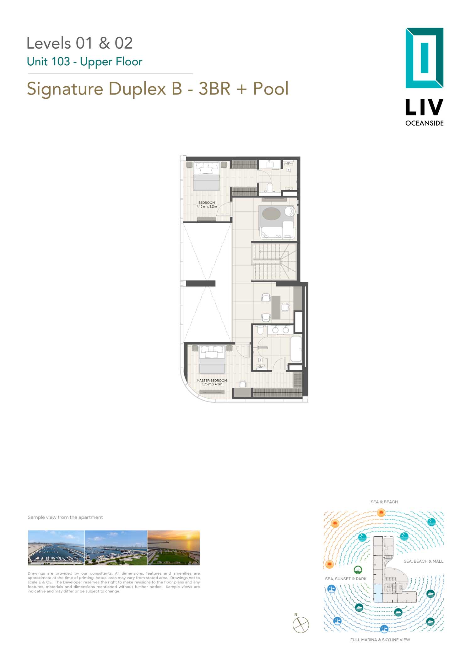 | Levels 01 & 02 | 3 Bedroom + Pool | Unit 102-Upper Floor (Signature Duplex A) | 3335.52 Sq Ft | Duplex Apartments |