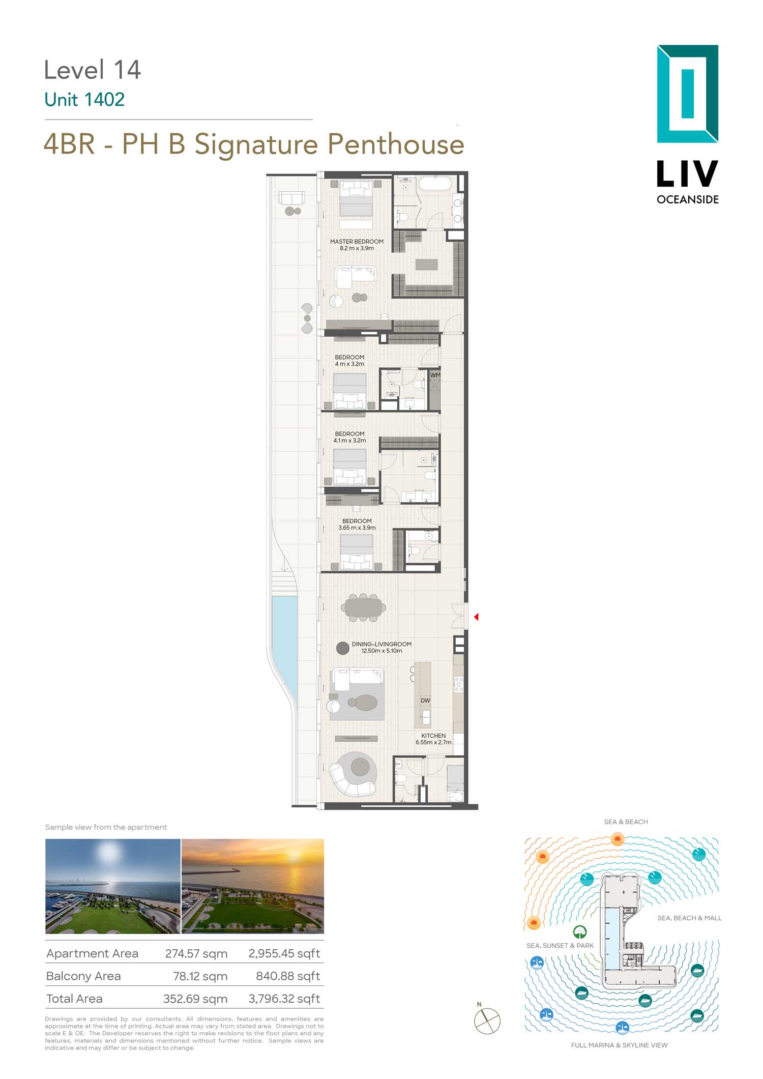 | Level 14 | 4 Bedrooms | Unit 1402 (4BR - PH B Signature Penthouse) | 3796.32 Sq Ft | Penthouse |