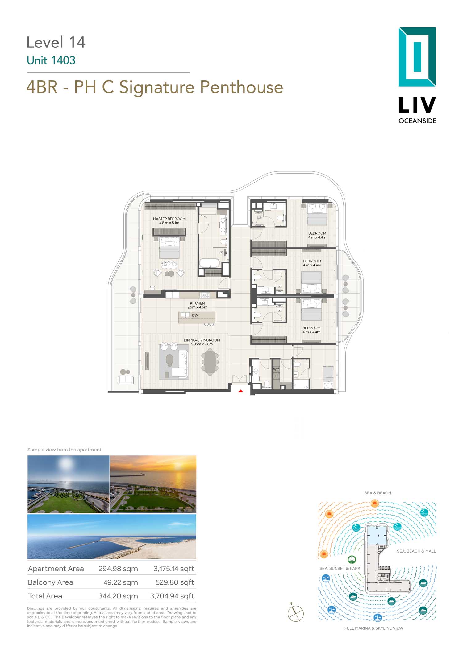 | Level 14 | 4 Bedrooms | Unit 1403 (4BR - PHC Signature Penthouse) | 3704.94 Sq Ft | Penthouse |