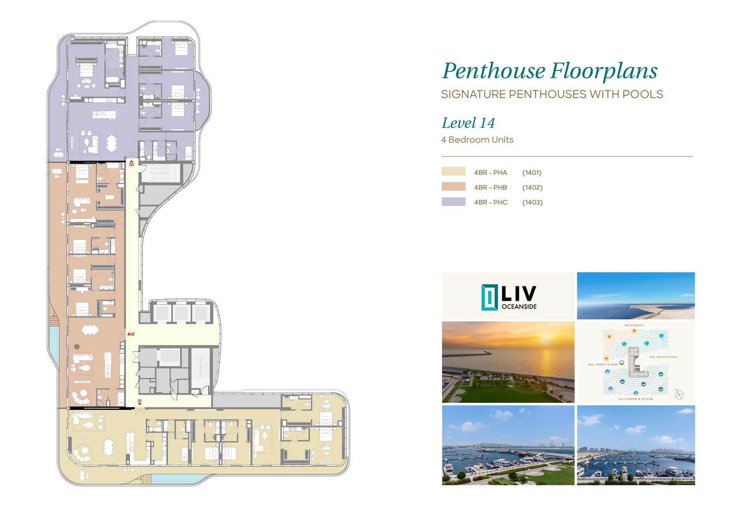 | Level 14 | 4 Bedrooms | Unit 1401 (4BR - PH A Signature Penthouse) | 4355.29 Sq Ft | Penthouse |