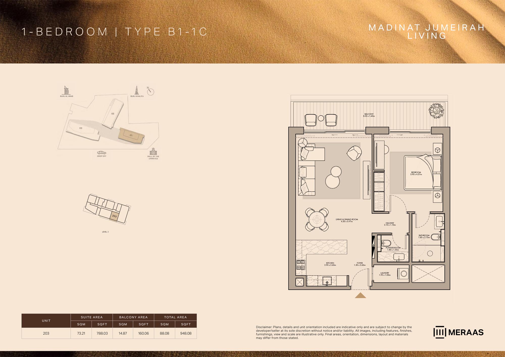 | Building - A | 1 Bedroom | LEVEL 2 (TYPE B1 - 1C - UNIT 203) | 948.08 Sq Ft | Apartment |