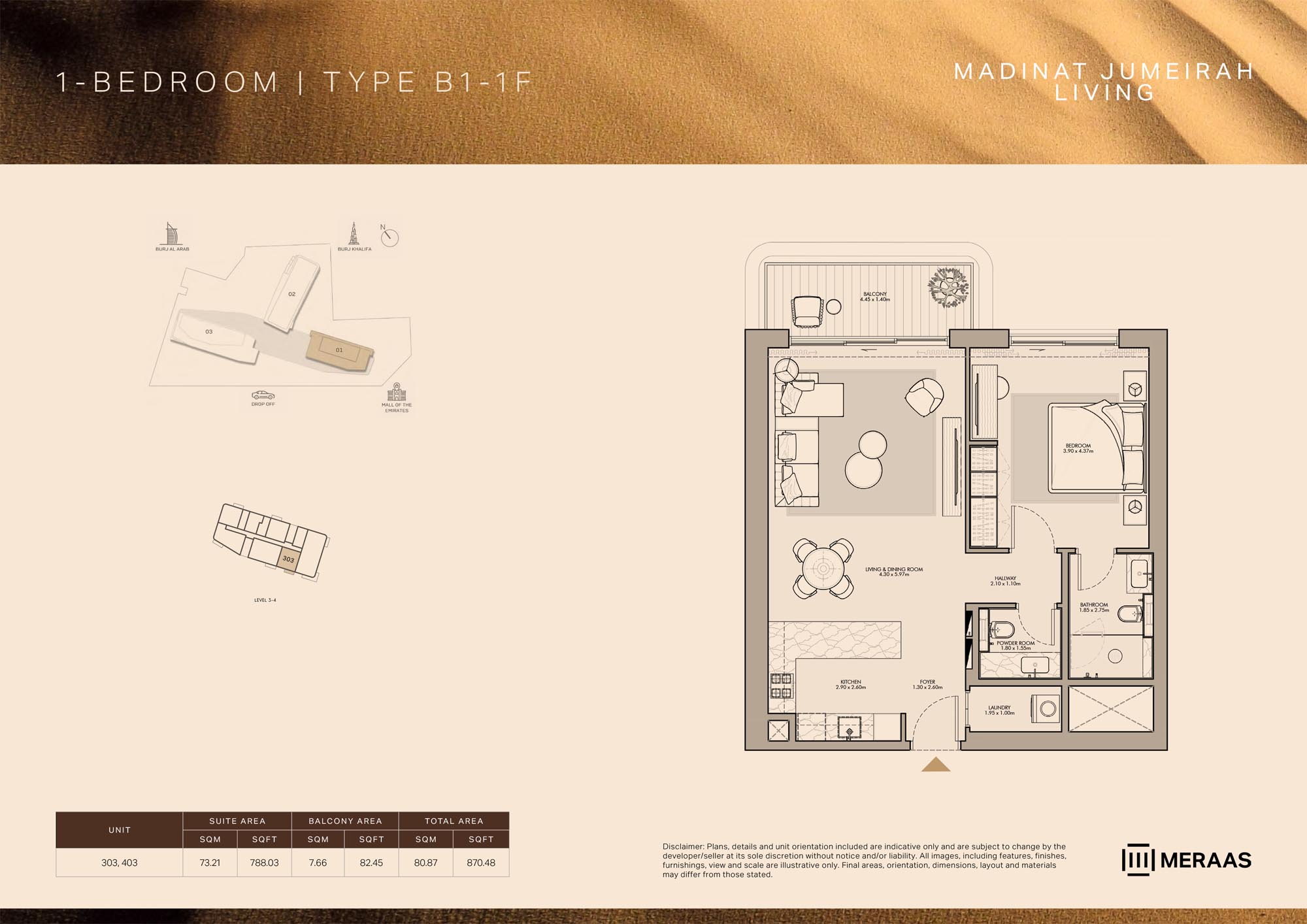| Building - A | 1 Bedroom | LEVEL 3 & 4 (TYPE B1 - 1F - UNIT 303 & 403) | 870.48 Sq Ft | Apartment |