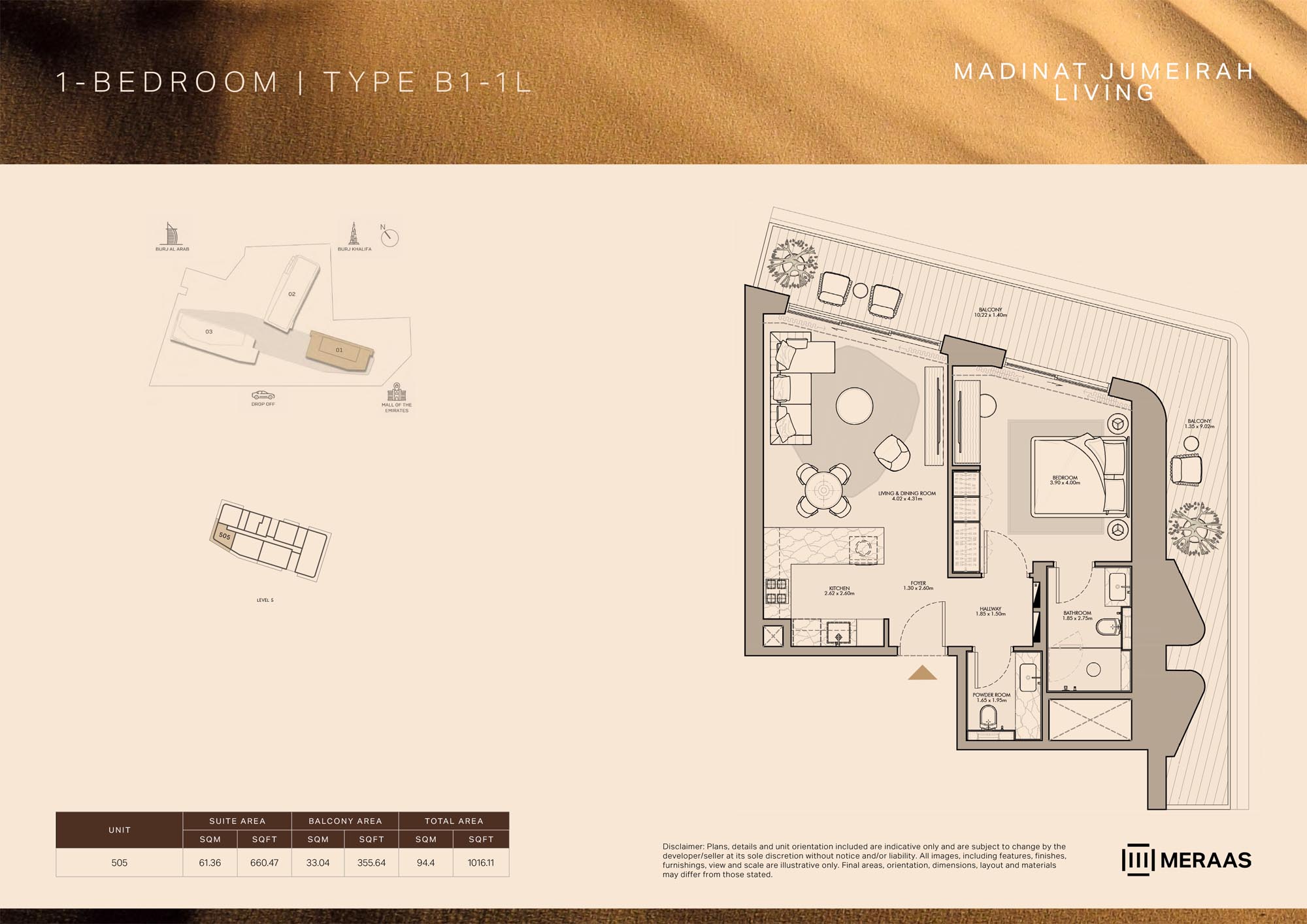 | Building - A | 1 Bedroom | LEVEL 5 (TYPE B1 - 1L - UNIT 505) | 1016.11 Sq Ft | Apartment |