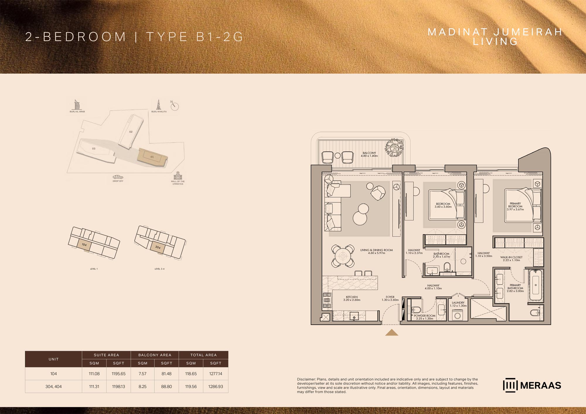 | Building - A | 2 Bedrooms | LEVEL 1 - 4 (TYPE B1 - 2G - Unit 104 - 404) | 1286.93 Sq Ft | Apartment |