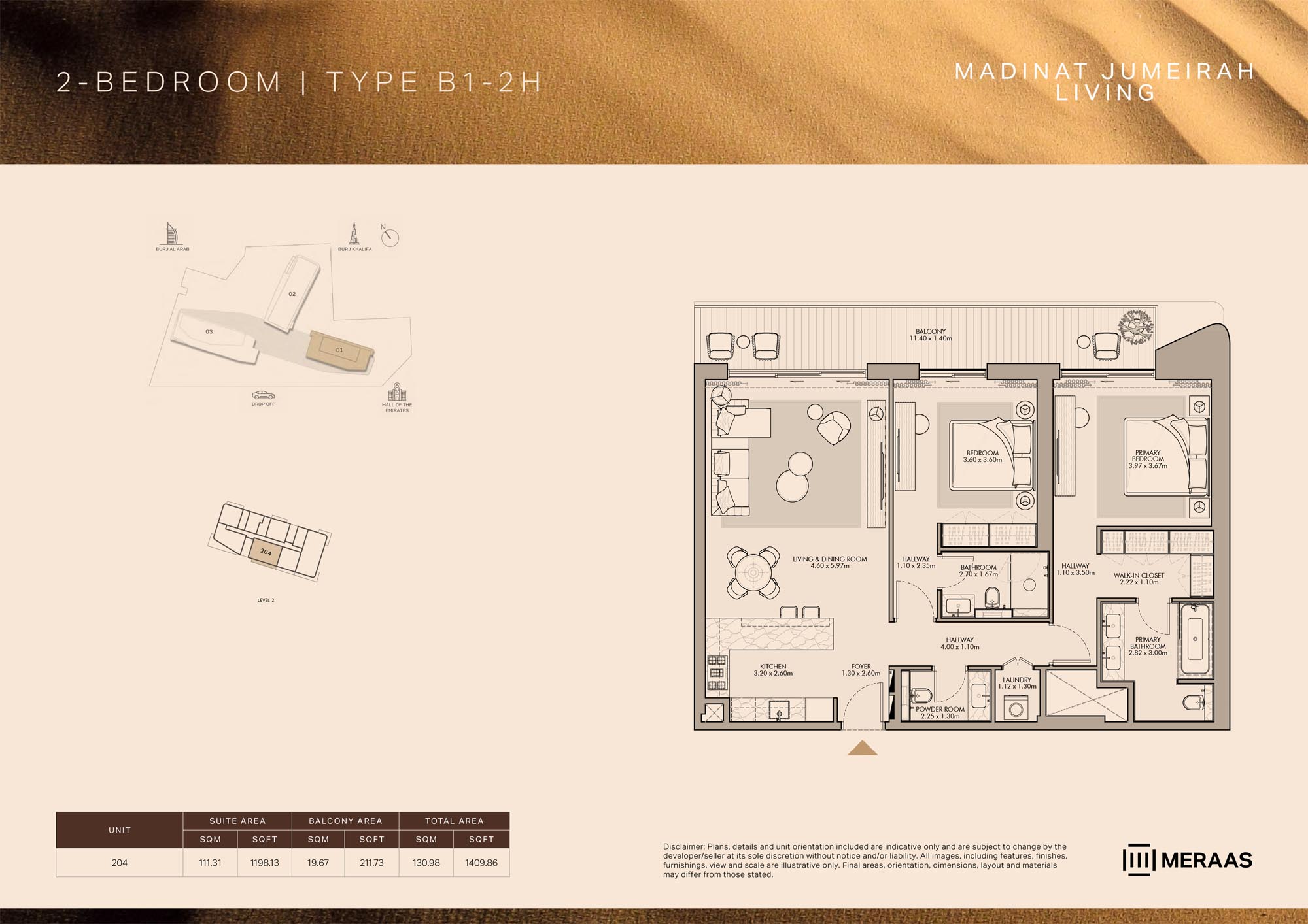 | Building - A | 2 Bedrooms | LEVEL 2 (TYPE B1 - 2H - Unit 204) | 1409.86 Sq Ft | Apartment |