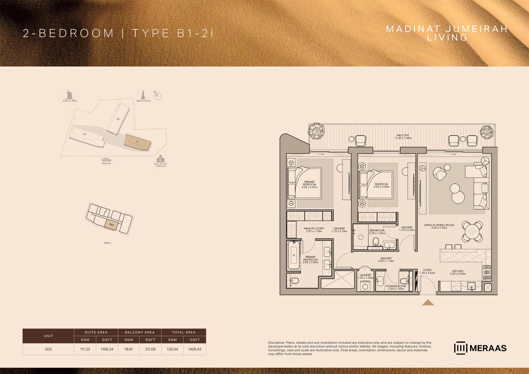 | Building - A | 2 Bedrooms | LEVEL 5 (TYPE B1 - 2I - Unit 503) | 1409.43 Sq Ft | Apartment |