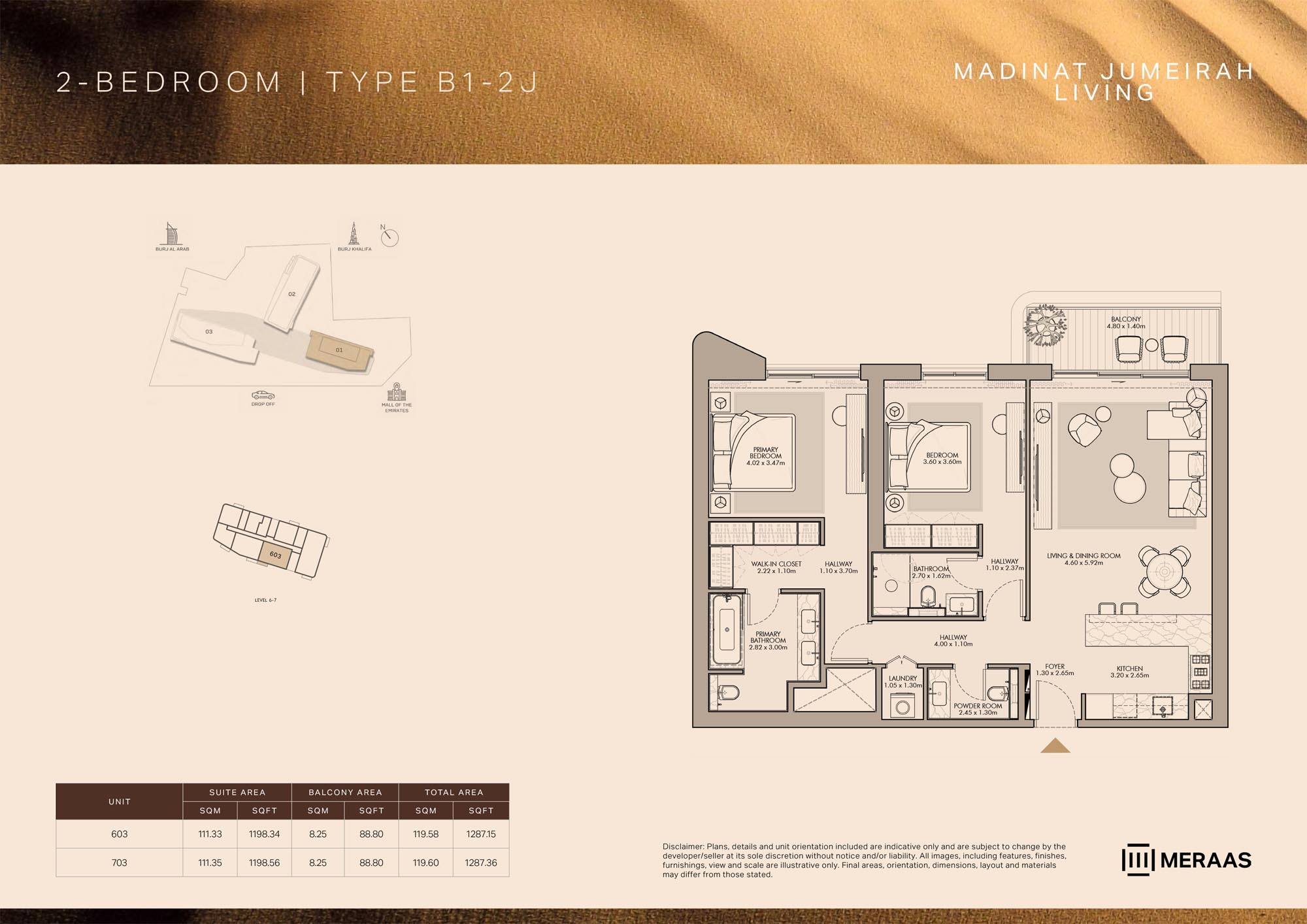 | Building - A | 2 Bedrooms | LEVEL 6 & 7 (TYPE B1 - 2J - Unit 603 & 703) | 1287.36 Sq Ft | Apartment |