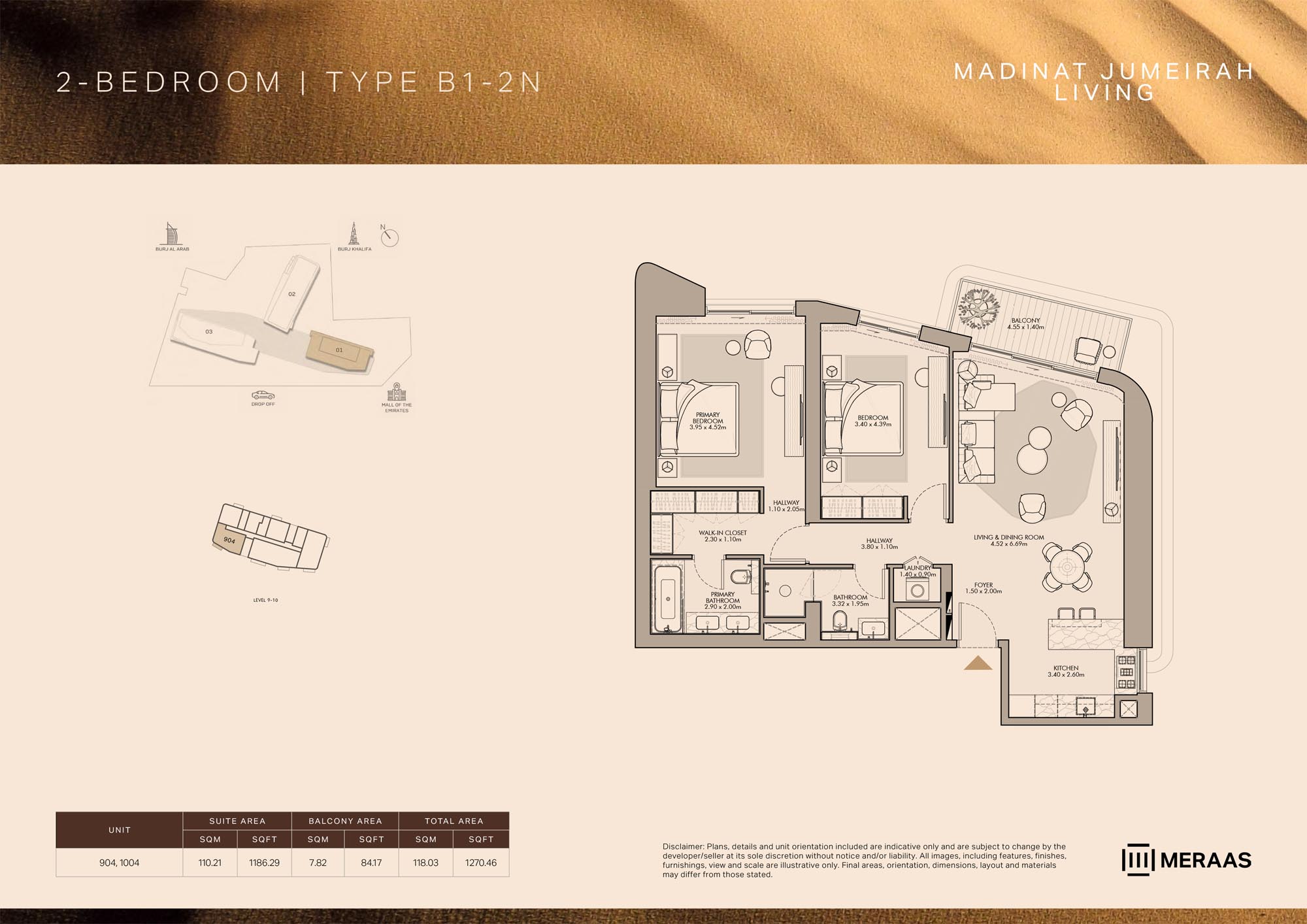 | Building - A | 2 Bedrooms | LEVEL 9 & 10 (TYPE B1 - 2N - Unit 904 & 1004) | 1270.46 Sq Ft | Apartment |