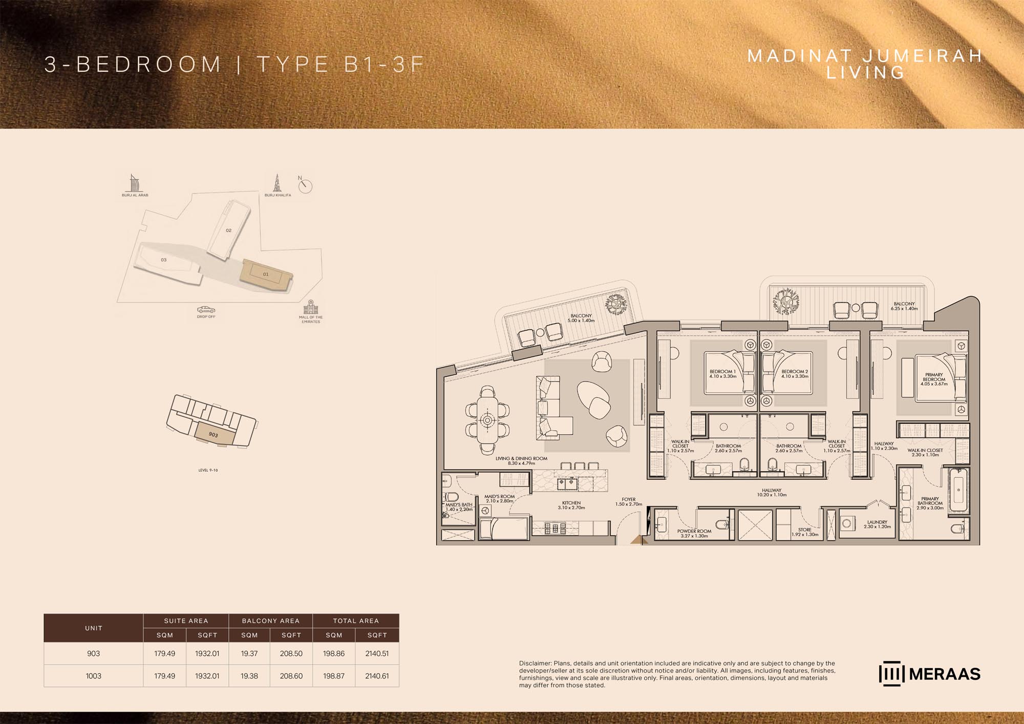 | Building - A | 3 Bedrooms + Maid | LEVEL 9 & 10 (TYPE B1 - 3F - Unit 903 & 1003) | 2140.61 Sq Ft | Apartment |