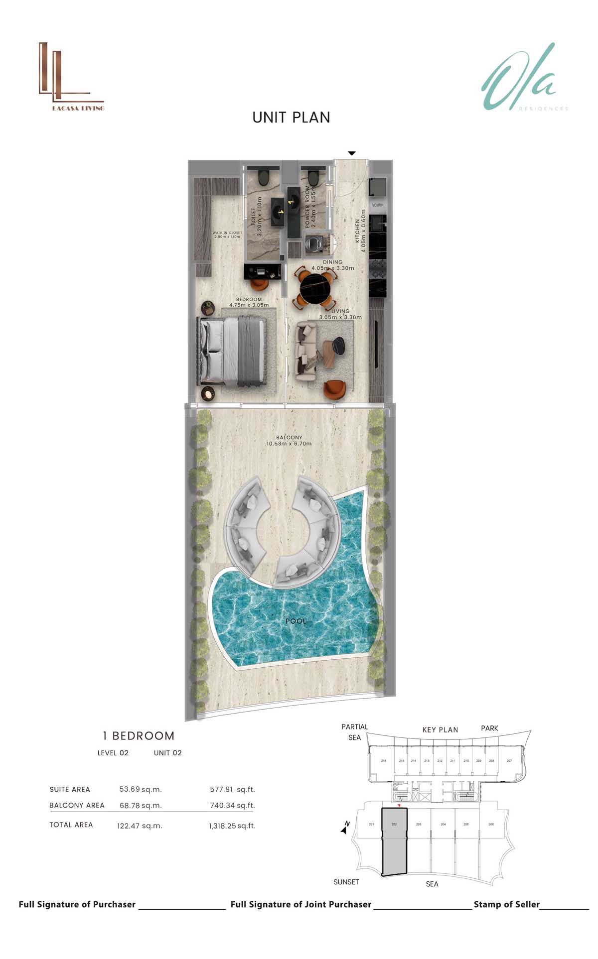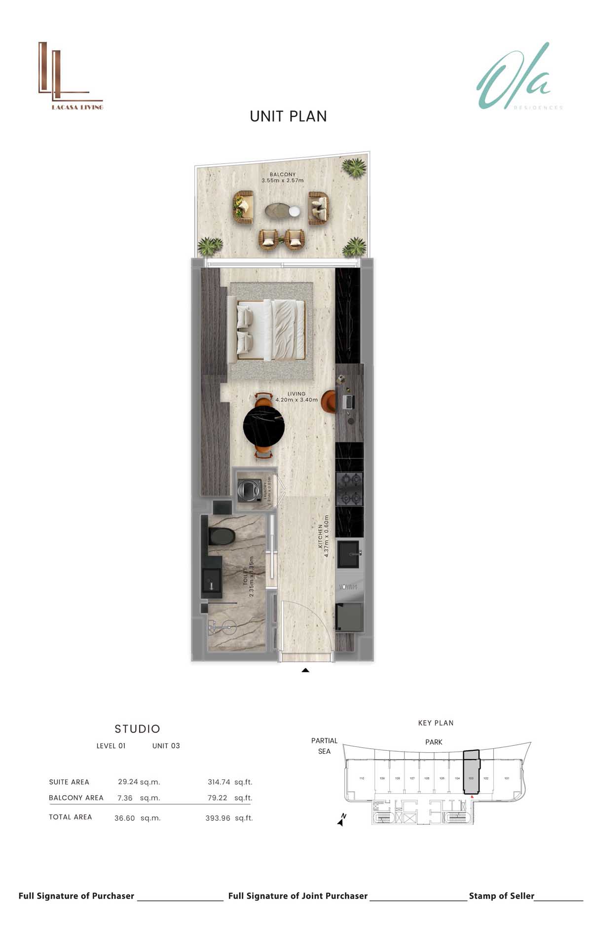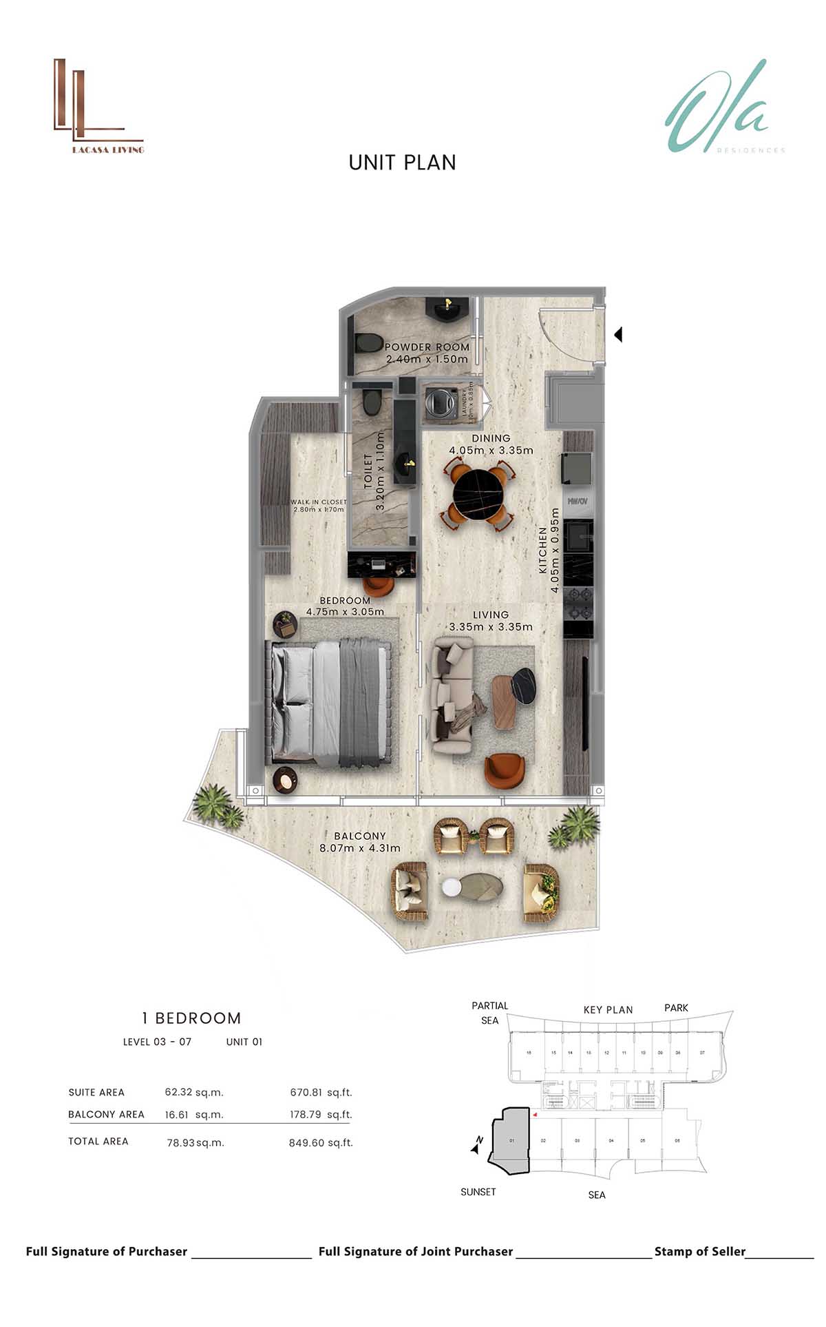 Ola Residences offers a variety of floor plans to cater to diverse preferences and lifestyles with premium selection of apartments. The open-plan designs seamlessly connect living, dining, and kitchen areas, creating an inviting atmosphere for families and individuals alike. Large windows and balconies in every unit enhance the living experience by providing panoramic views of the surrounding waterfront and landscape. High-quality finishes and premium materials are evident in every detail, ensuring a sophisticated and enduring living space.
