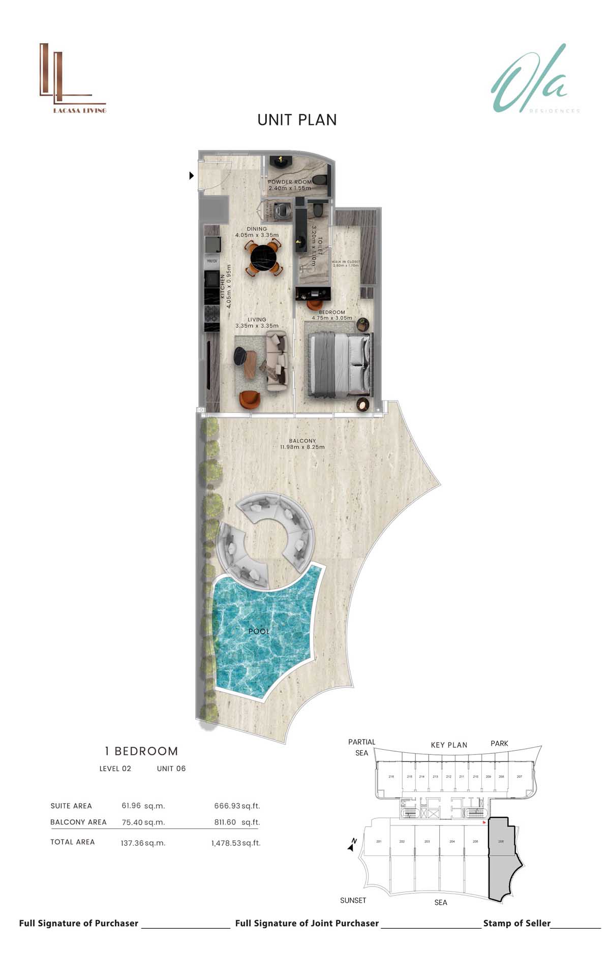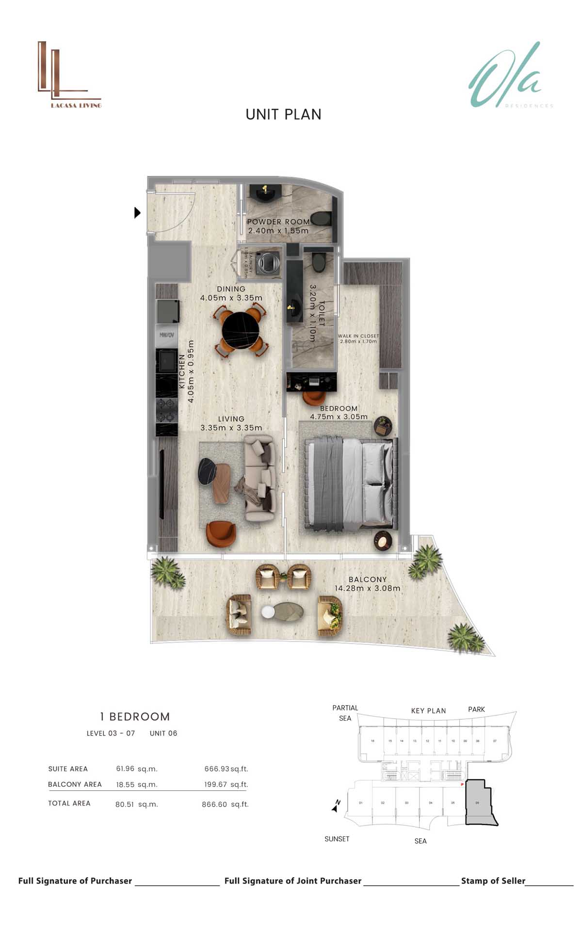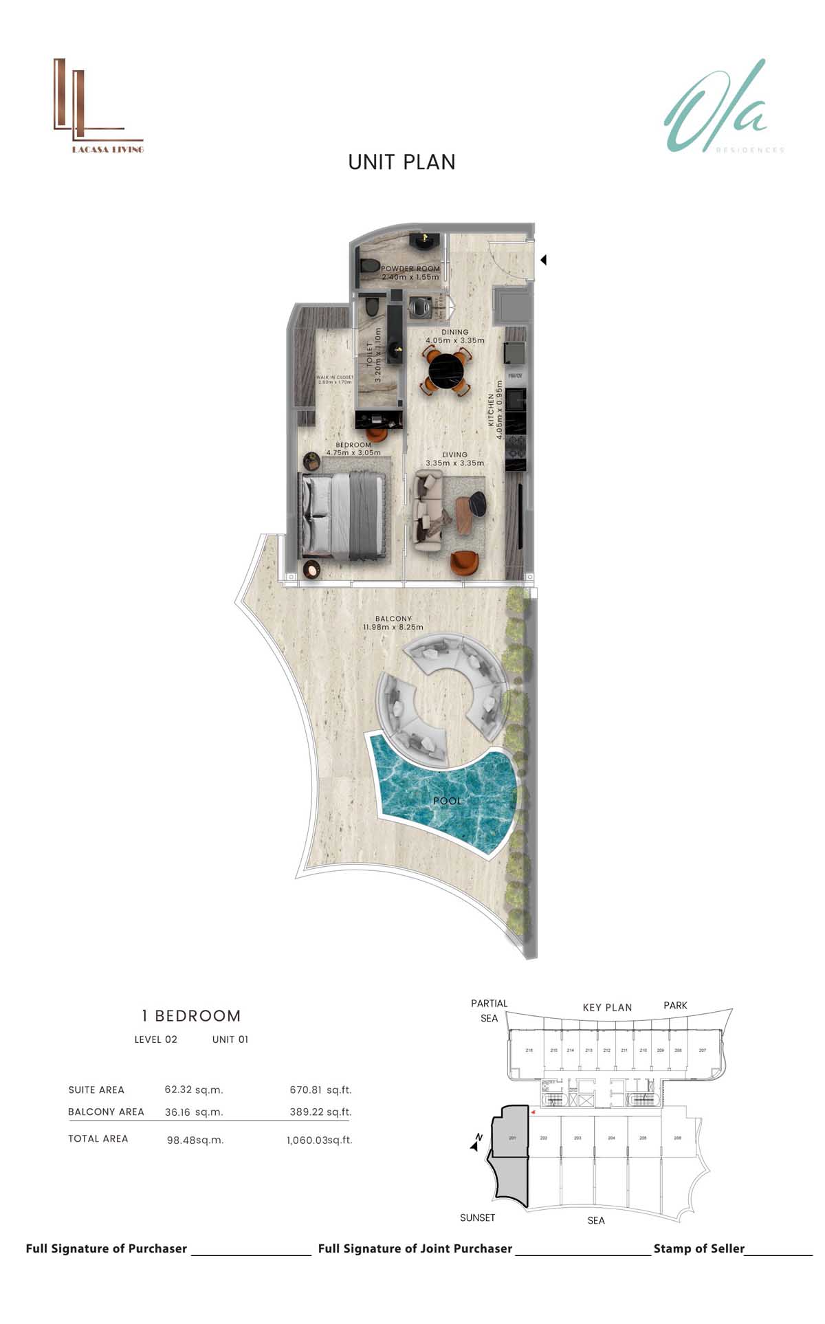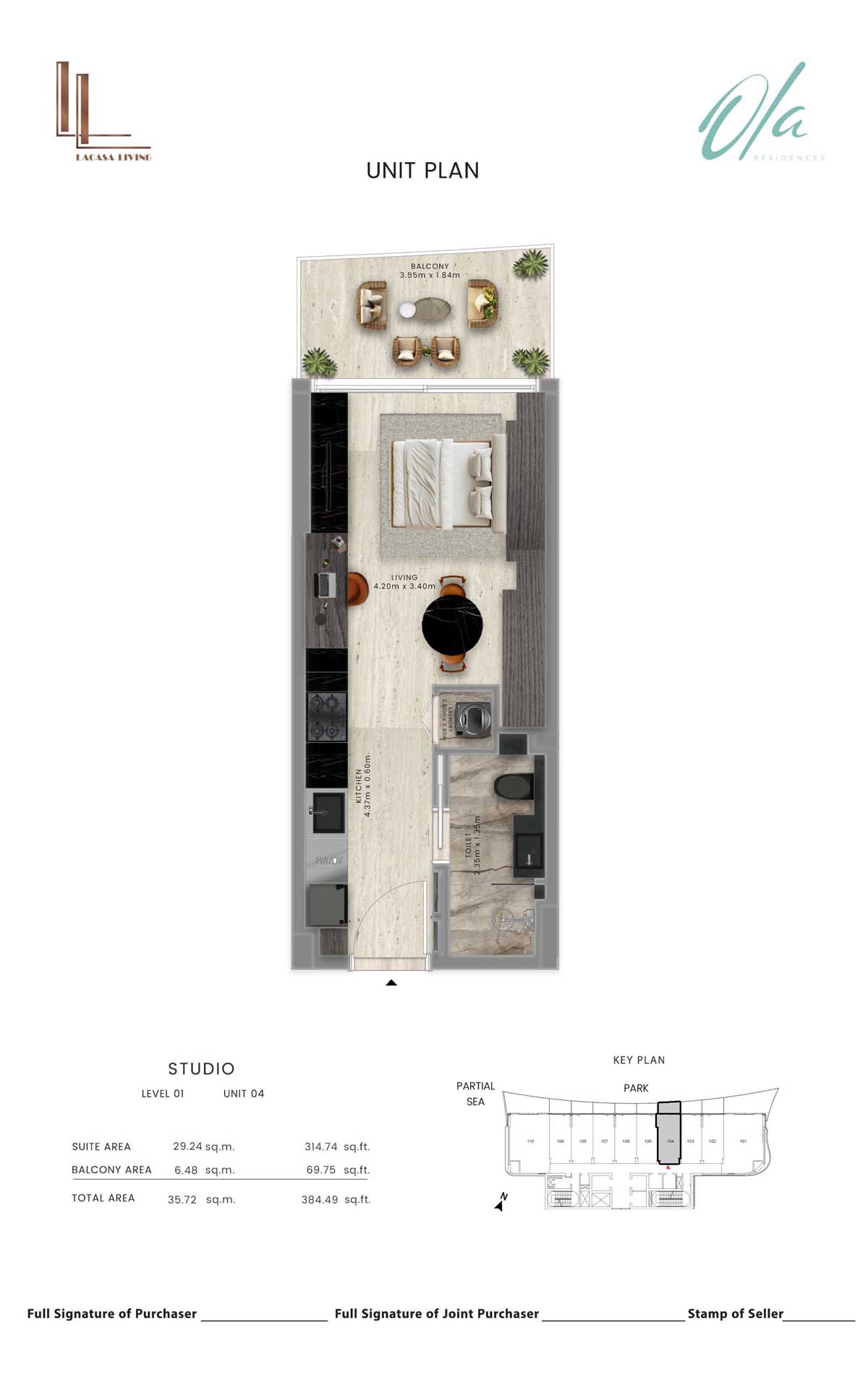 Ola Residences offers a variety of floor plans to cater to diverse preferences and lifestyles with premium selection of apartments. The open-plan designs seamlessly connect living, dining, and kitchen areas, creating an inviting atmosphere for families and individuals alike. Large windows and balconies in every unit enhance the living experience by providing panoramic views of the surrounding waterfront and landscape. High-quality finishes and premium materials are evident in every detail, ensuring a sophisticated and enduring living space.
