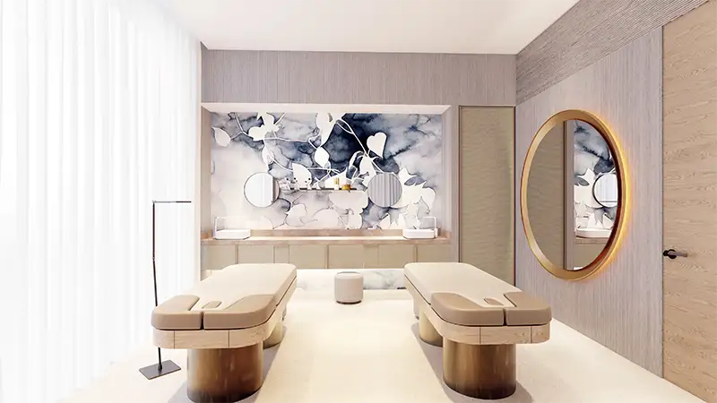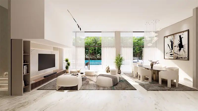 Each home features modern design elements plus family-sized rooms alongside deluxe style choices set against scenic views from the Arabian Gulf to the Dubai skyline. Living at these residences offers residents a private chic retreat within a Palm Jumeirah community. The façade builds a luxurious living platform that combines perfection with daily practicality.