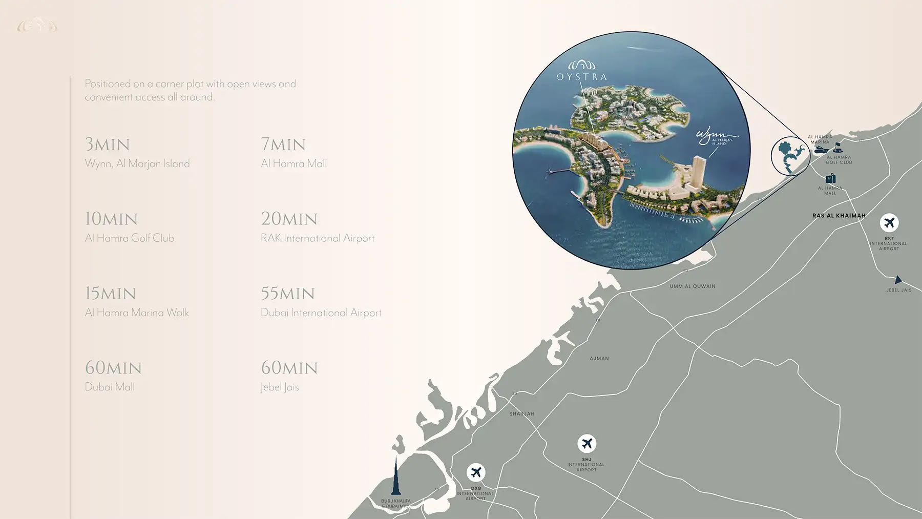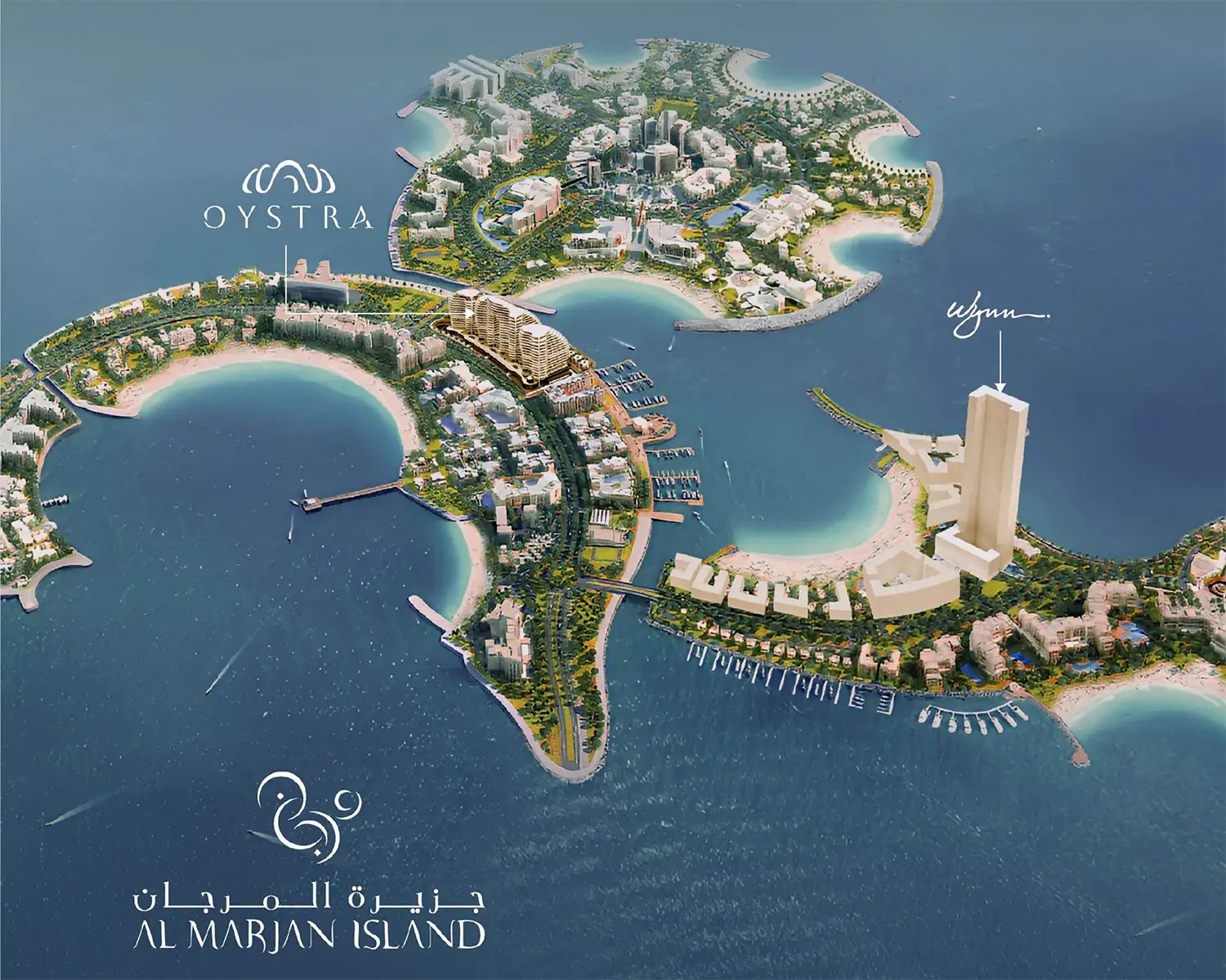 - Situated on the bustling waterfront coast of Marjan Island with panoramic views of the evolving island with upscale hotels, residential infrastructure