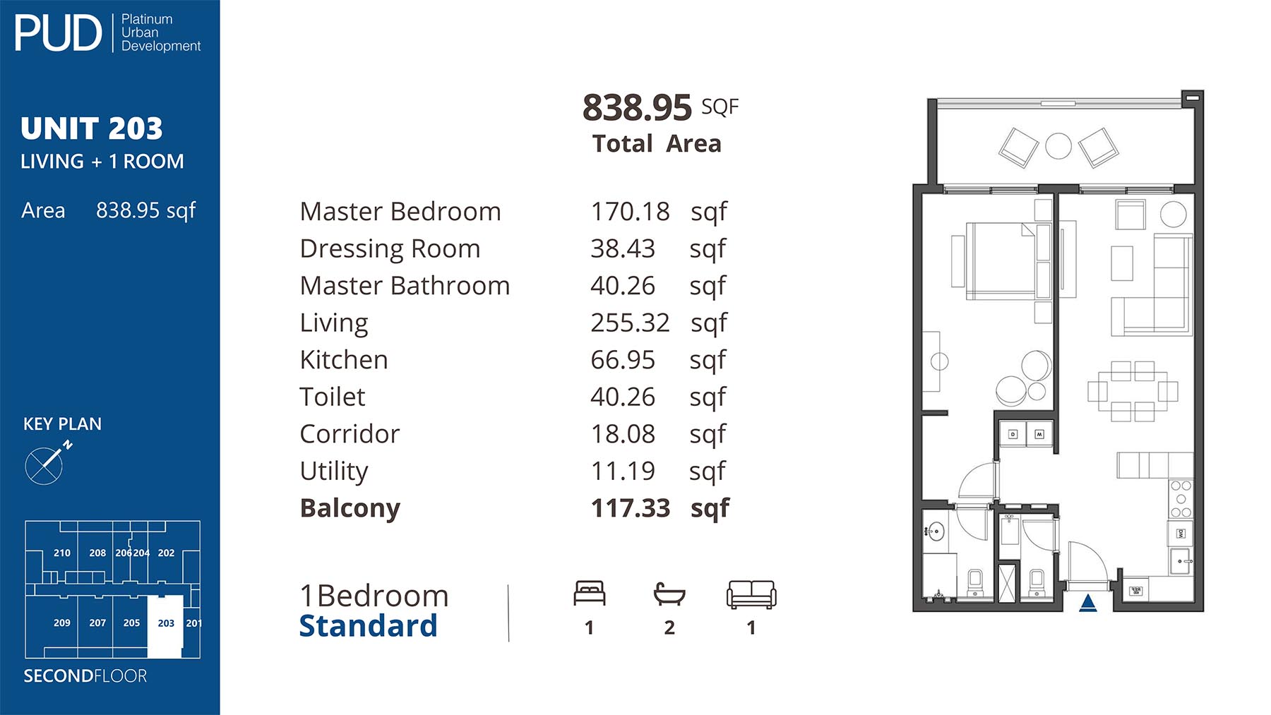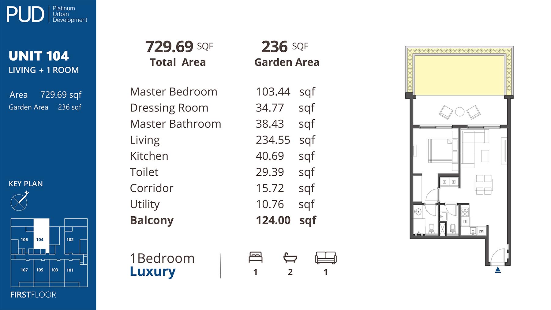The floor plans of PUD Residences 1 are designed to provide an urban way of living within compact studios to luxurious 1, 2, & 3-bedroom apartments. There are only 47 residences within this 5-storey housing jewel crafted with attention to detail. Each home creates a balance between indoor and scenic outside beauty by offering large windows in the living and bedrooms, while a generous balcony lets you embrace the calm and inspiring views of the green and calming suburban spirit of the Emirates.