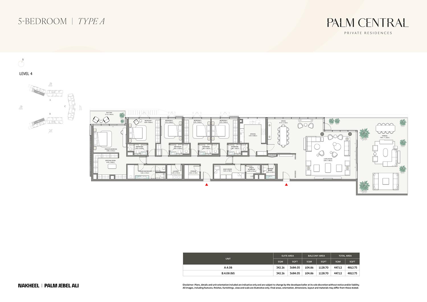 The Palm Central Private Residences by Nakheel is a tale of unheard resort-style coastal living with 1 to 5-bedroom apartments, townhouses, & penthouses at Palm Jebel Ali, Dubai. Welcome to explore something unseen and worth experiencing in one of the prime destinations of the Emirates. Your resort-style home awaits in this largest artificial palm-shaped island of Dubai, where ocean, warm beach, and sweeping skyline define the rhythm of each day. Born from the ocean’s shimmering tides, this spectacular project is sculpted by nature’s gentle pulse situated amidst the fronds M and N. All the details and spaces are created to reinstate the echelon of life, raise day-to-day existence, and glorify the relaxed rhythm of island living - so that the residents live in a blend of privacy, nature and modern comfort.