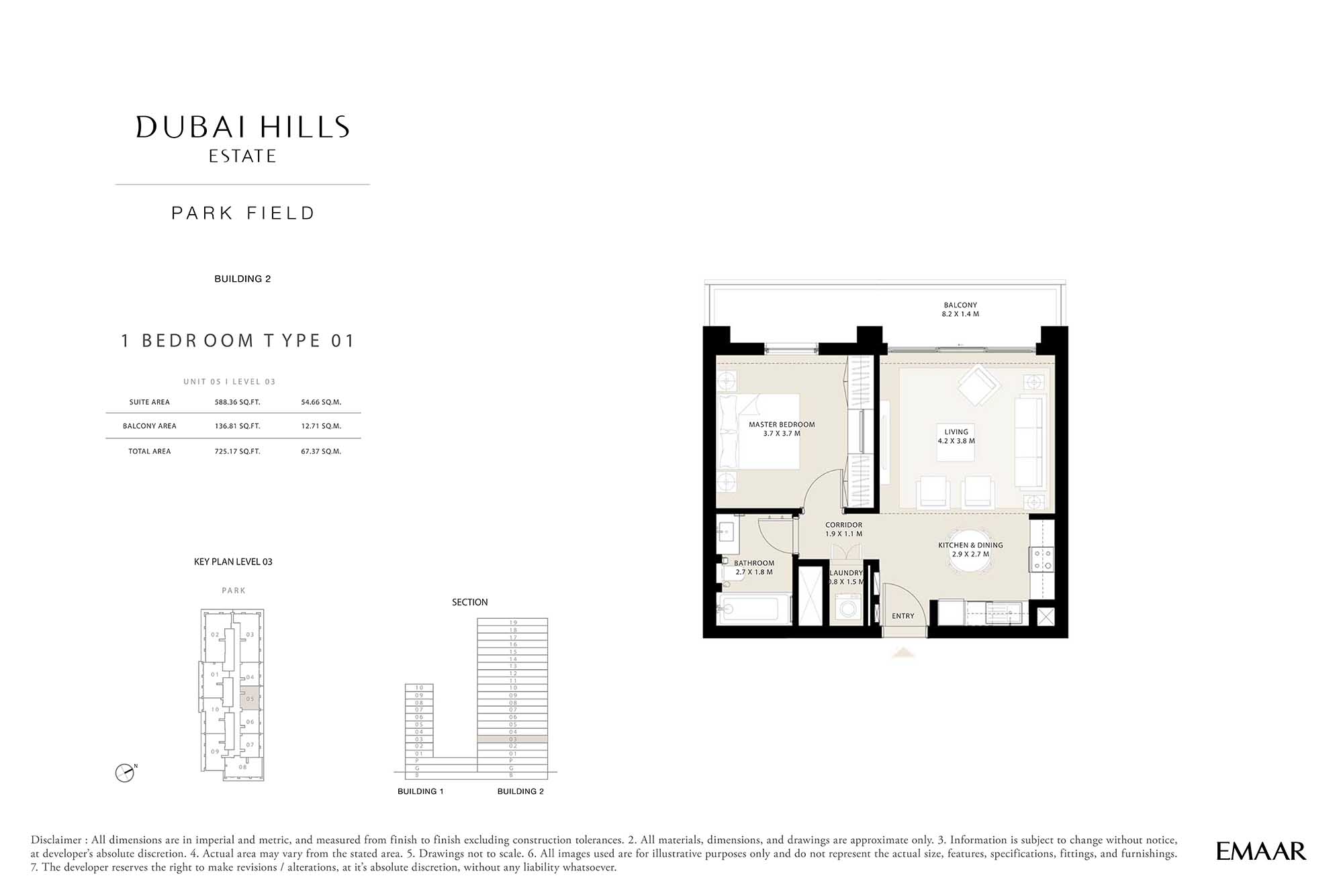 | Building 02 | 1 Bedroom | Level 03 (Type 01 - Unit 05) | 725.17 Sq Ft | Apartment |