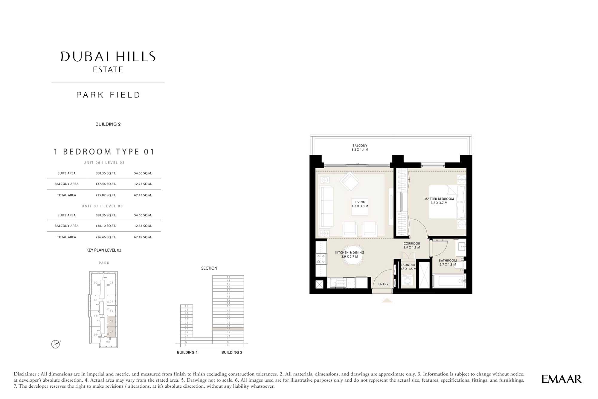 | Building 02 | 1 Bedroom | Level 03 (Type 01 - Unit 06) | 725.82 Sq Ft | Apartment |