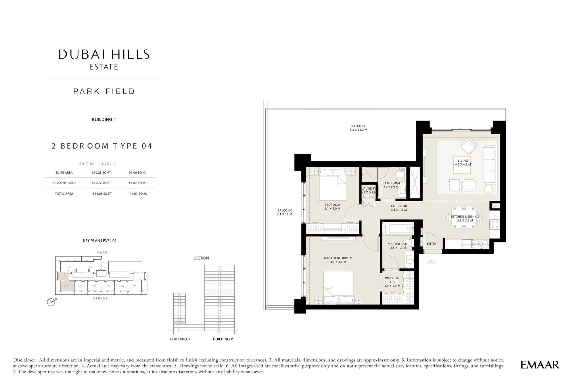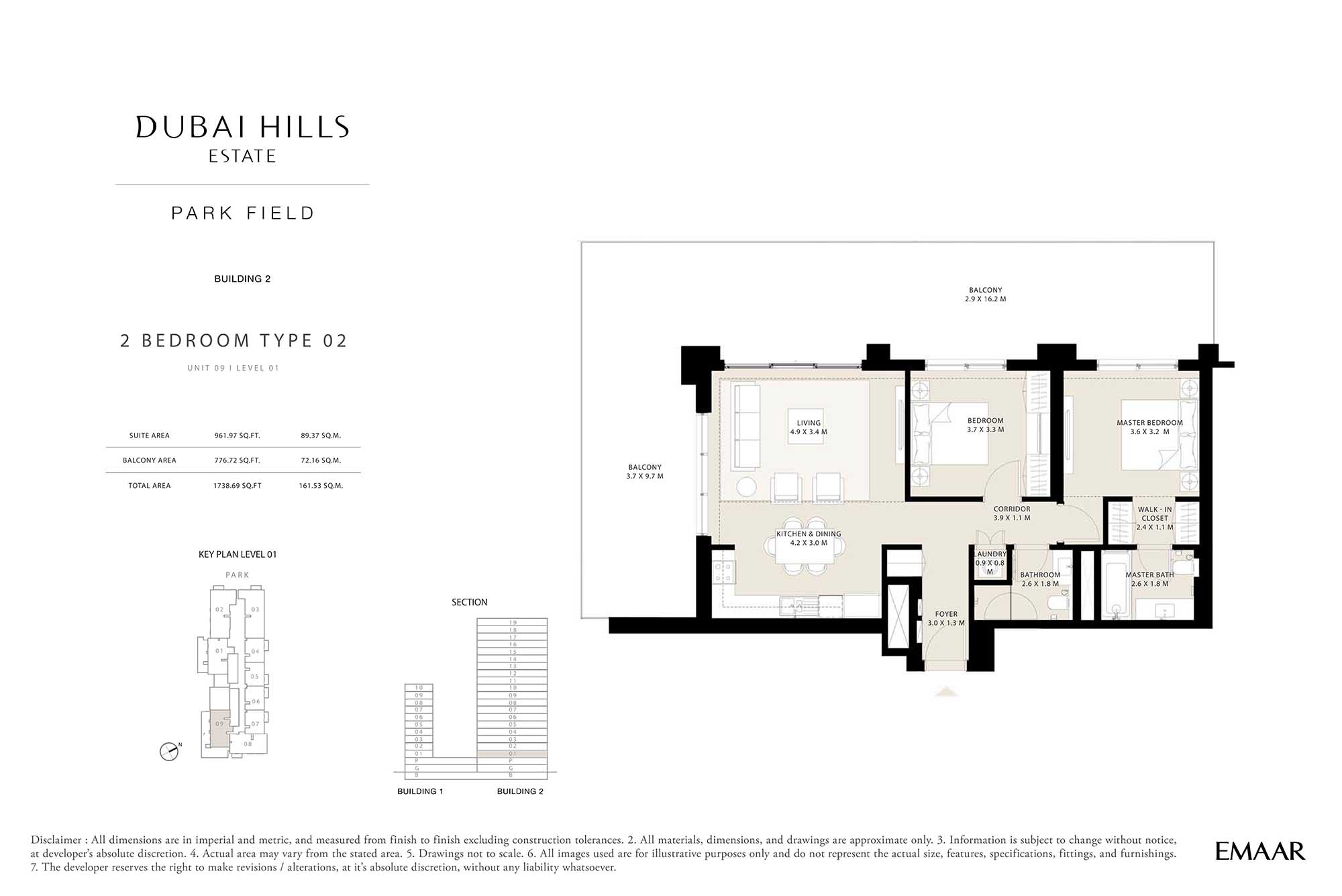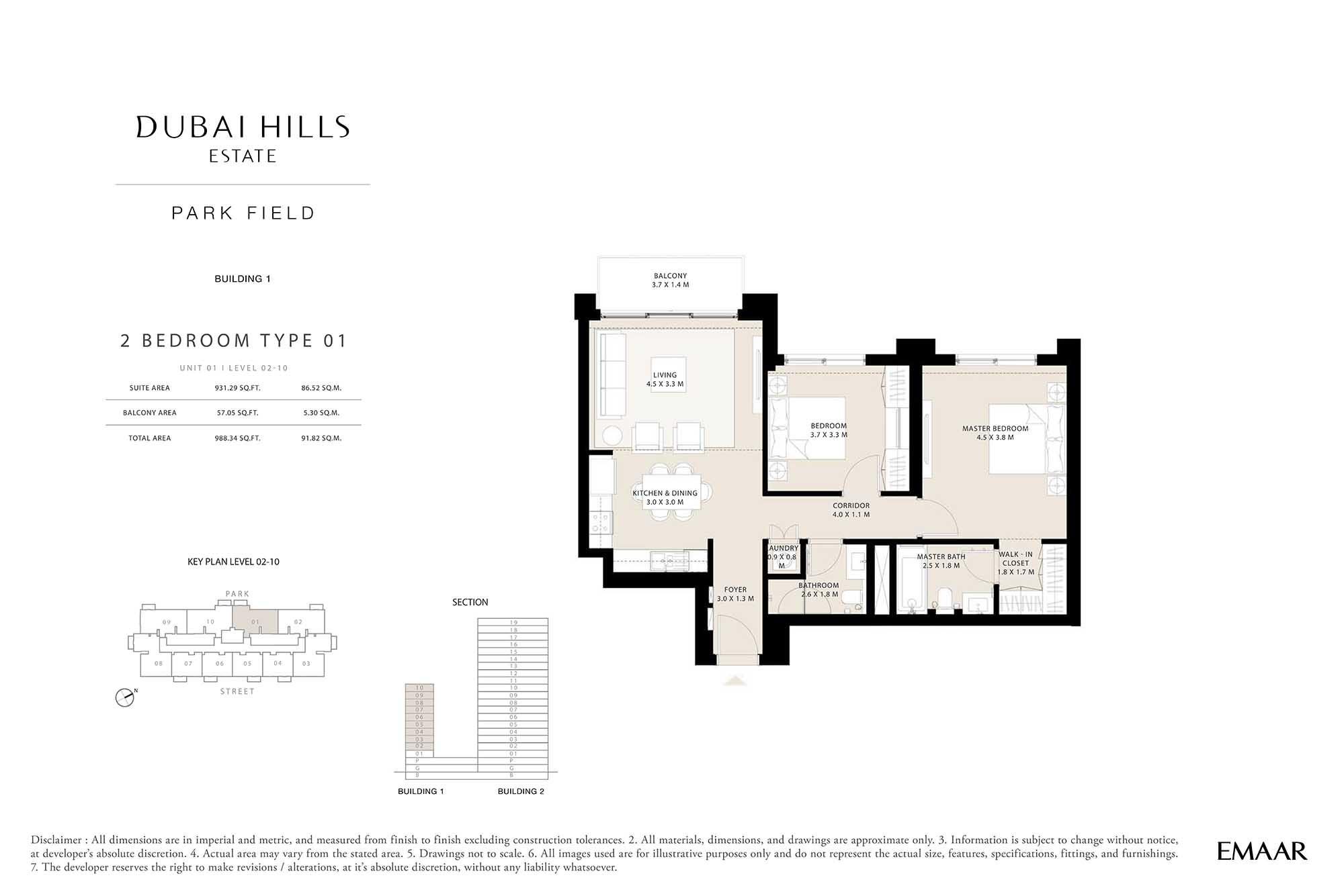 | Building 01 | 2 Bedrooms | Level 02-10 (Type 01 - Unit 01) | 988.34 Sq Ft | Apartment |