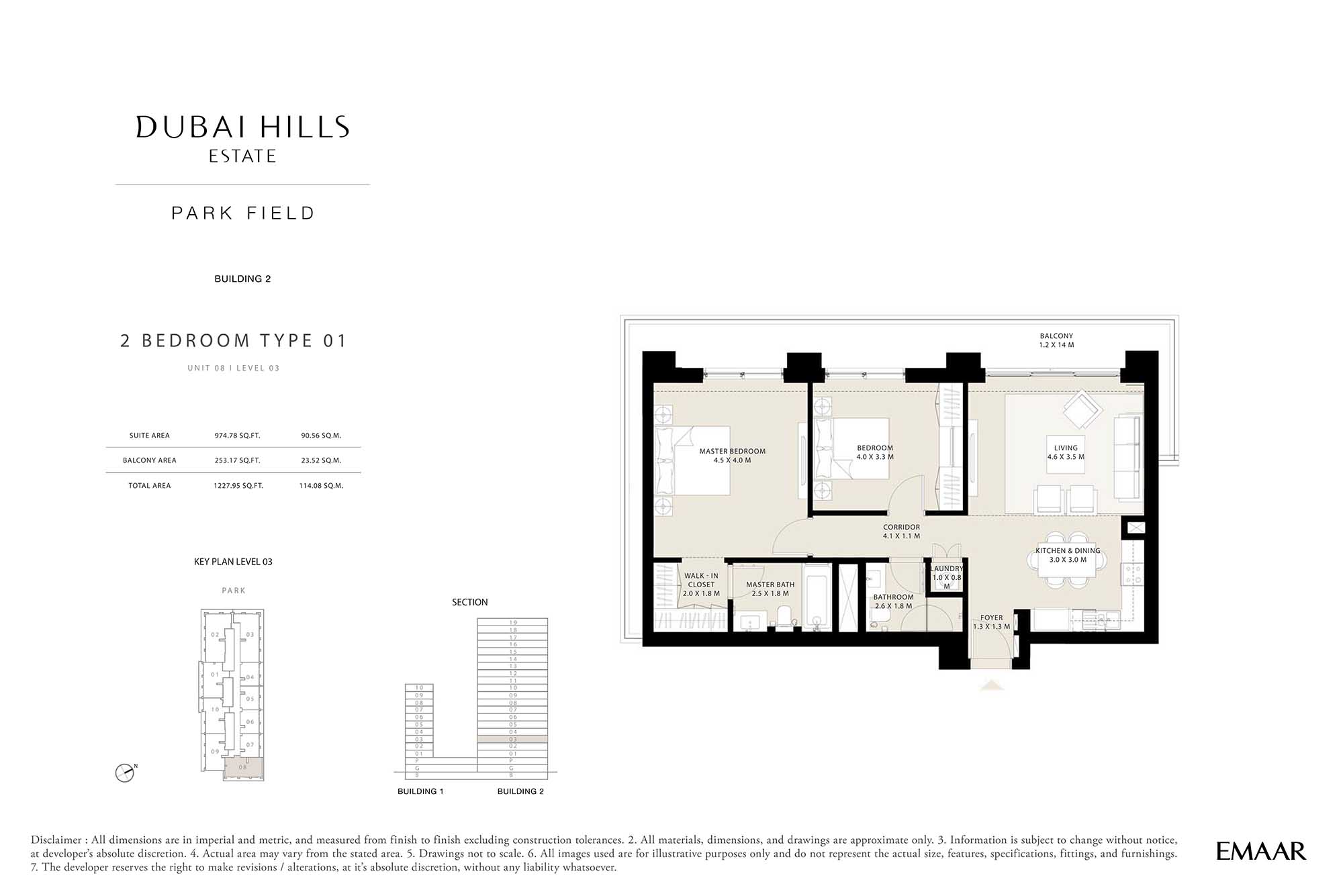 | Building 02 | 2 Bedrooms | Level Podium (Type 03 - Unit 01) | 1126.98 Sq Ft | Apartment |