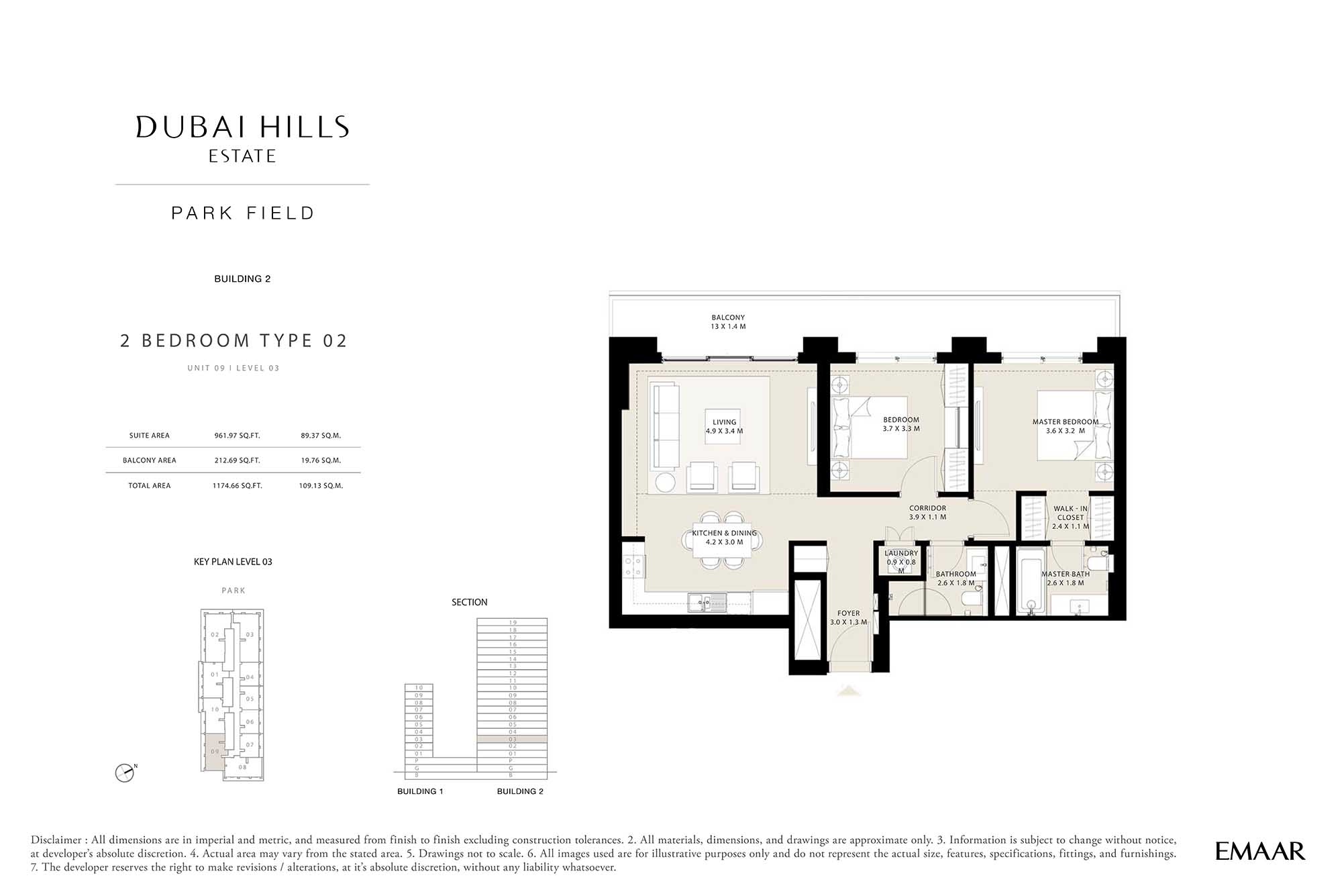 | Building 02 | 2 Bedrooms | Level 03 (Type 02 - Unit 09) | 1174.66 Sq Ft | Apartment |