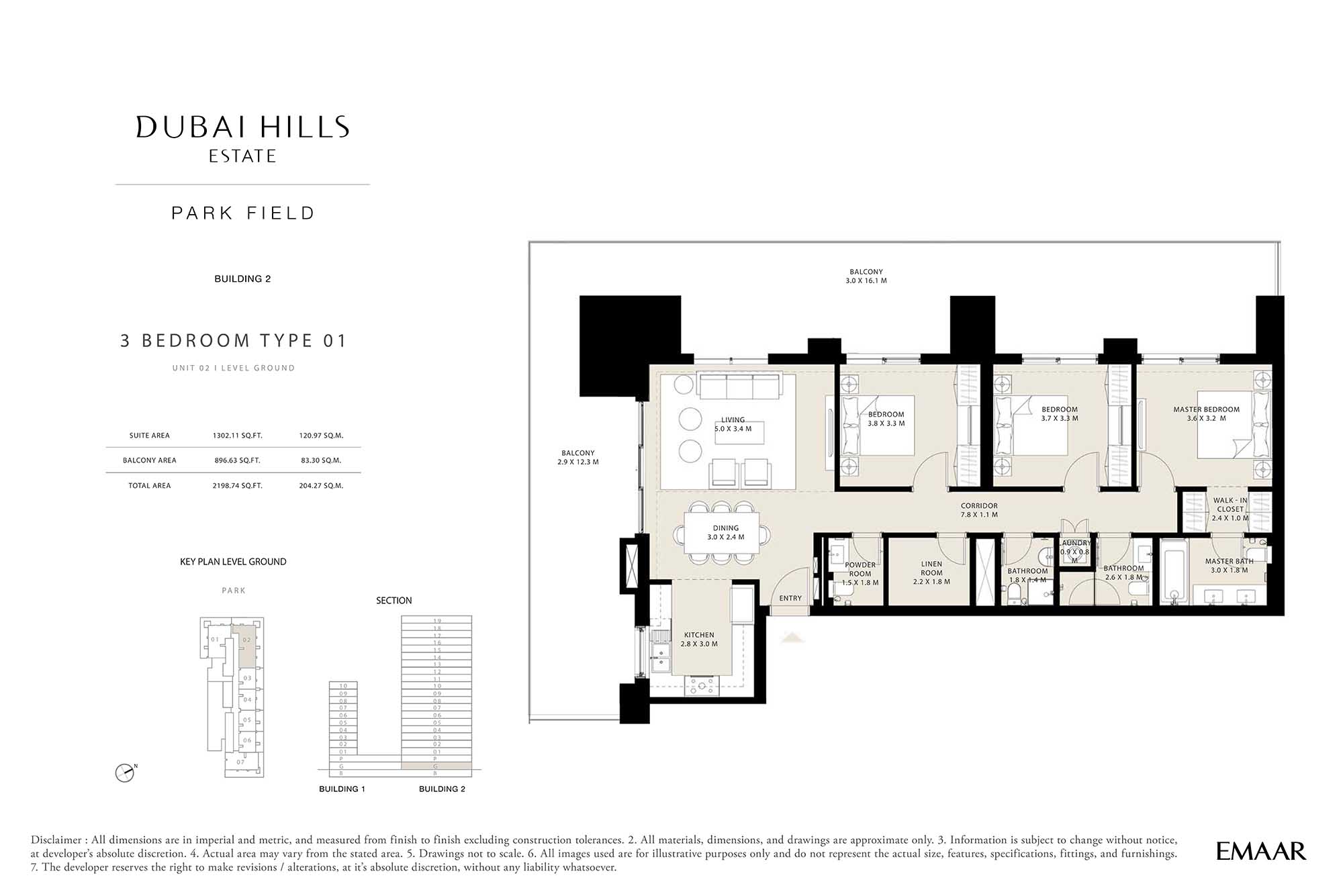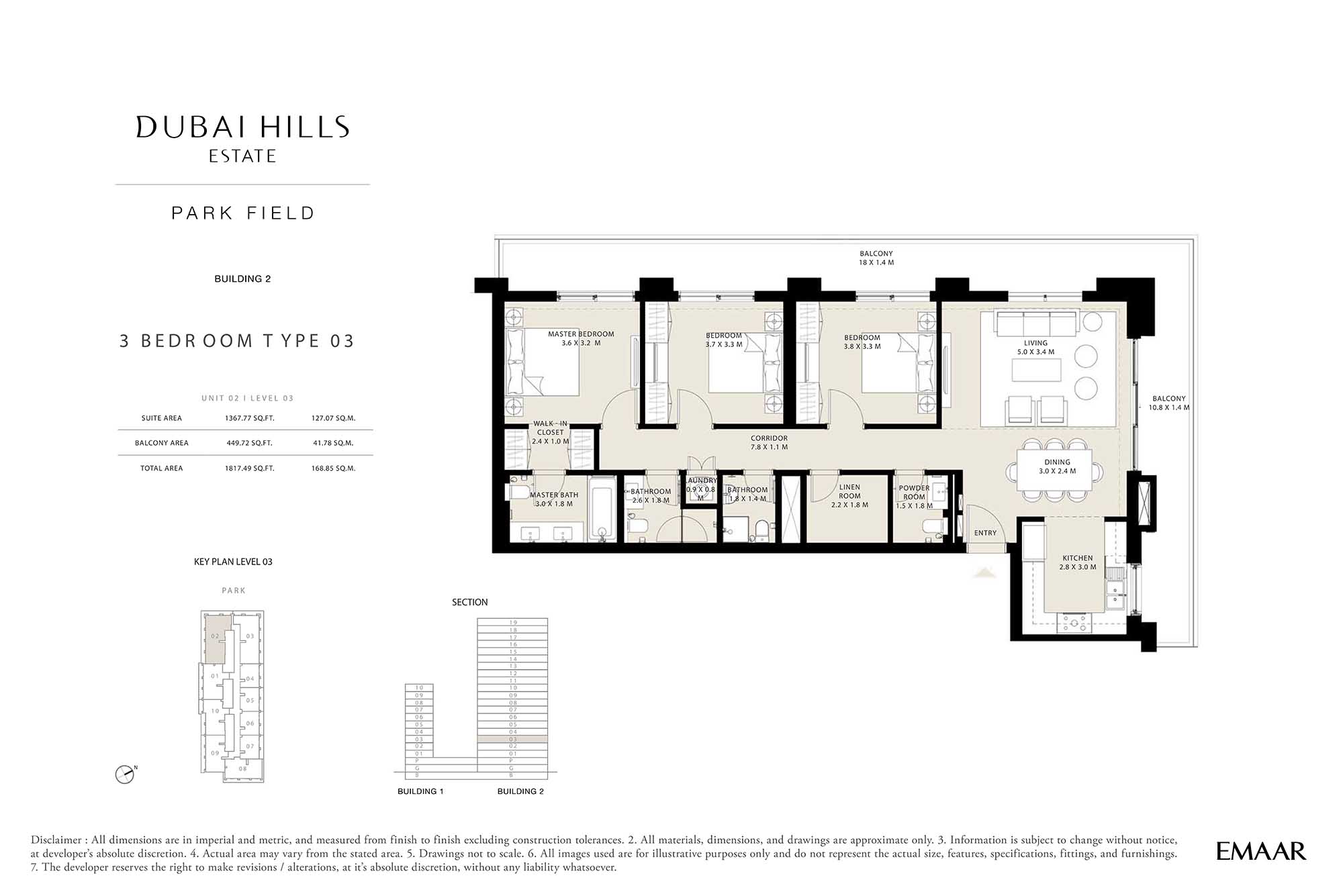 | Building 02 | 3 Bedrooms | Level 03 (Type 03 - Unit 02) | 1817.49 Sq Ft | Apartment |