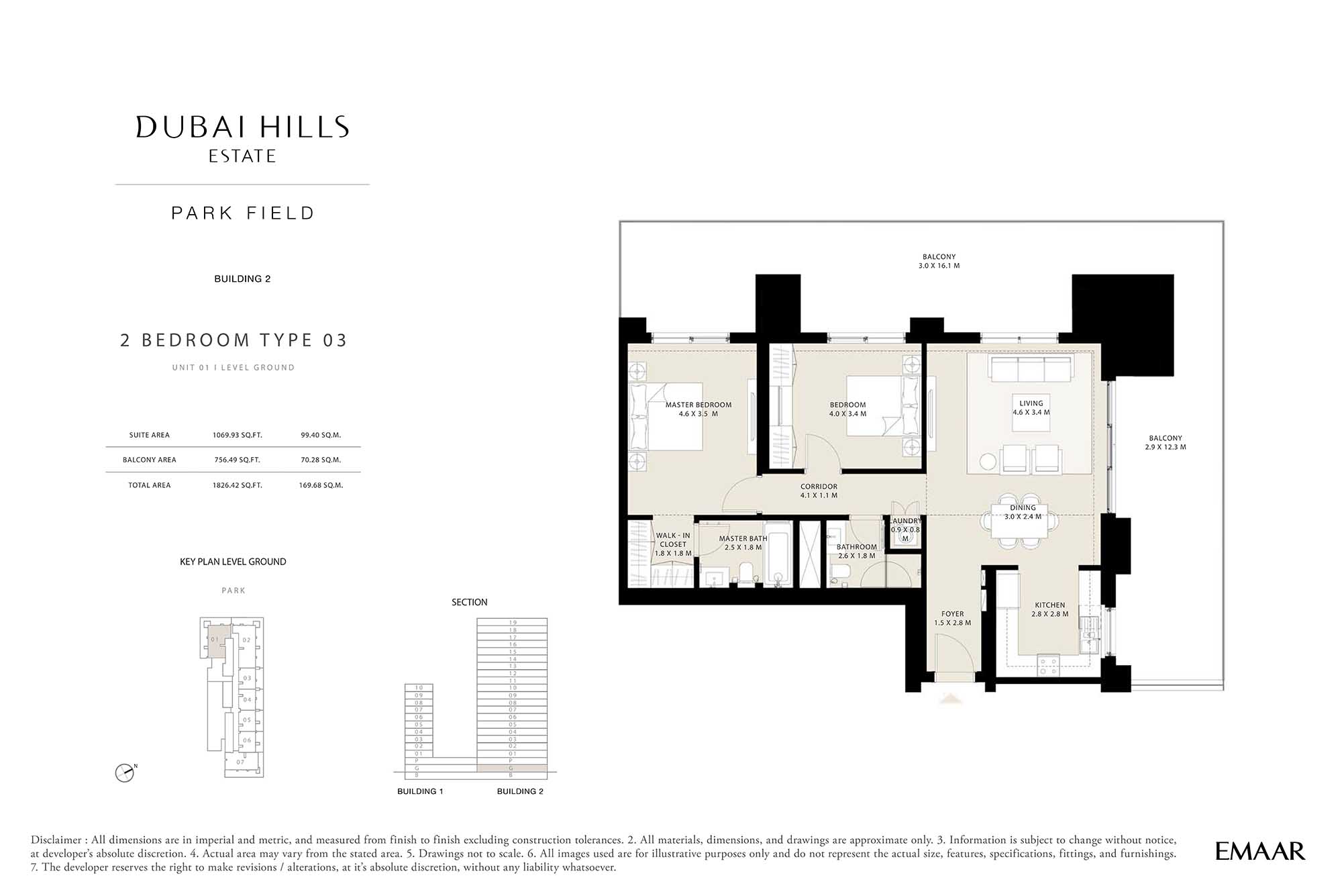 | Building 02 | 2 Bedrooms | Level Ground (Type 03 - Unit 01) | 1826.42 Sq Ft | Apartment |
