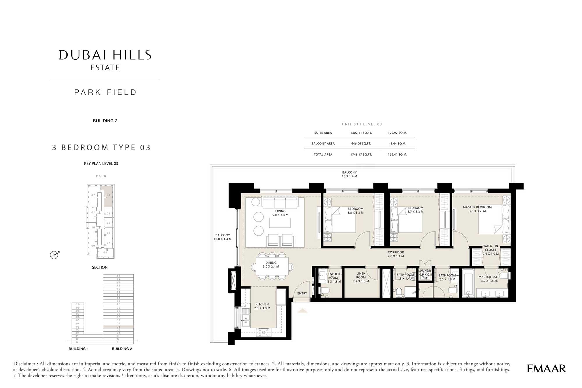 | Building 02 | 3 Bedrooms | Level 03 (Type 03 - Unit 03) | 1748.17 Sq Ft | Apartment |